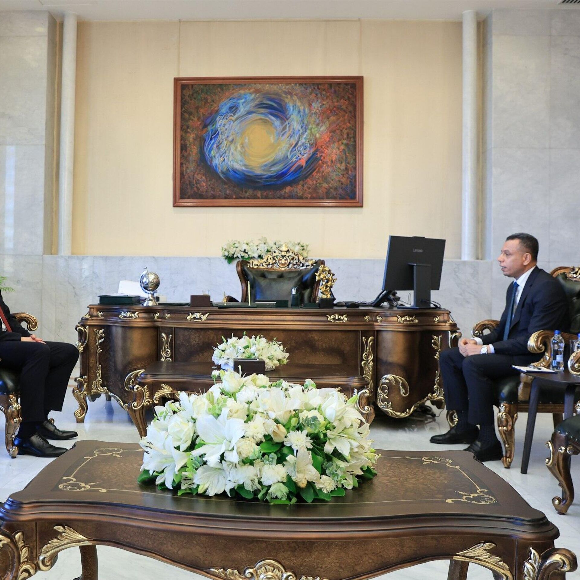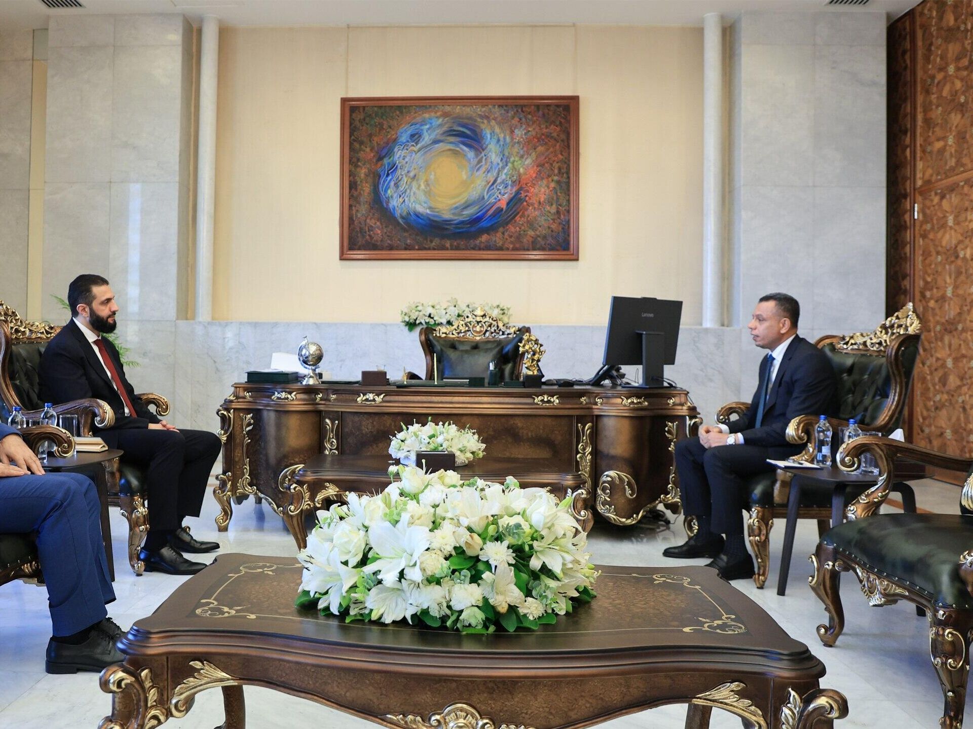 © Photo / Presidency of the Syrian Arab Republicاستقبل الرئيس السوري للمرحلة الانتقالية أحمد الشرع، في العاصمة دمشق رئيس جهاز المخابرات الوطني العراقي حميد الشطري
