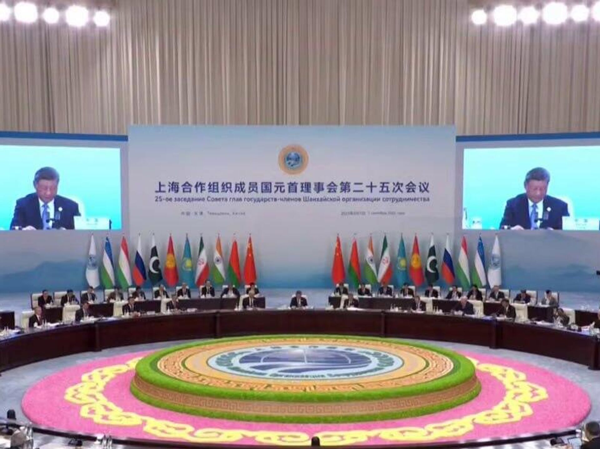 شنغهاي للتعاون"، منظمة دولية تأسست عام 2001، وتضم بيلاروسيا والهند وإيران وكازاخستان والصين وقيرغيزستان وروسيا وطاجيكستان وباكستان وأوزبكستان.