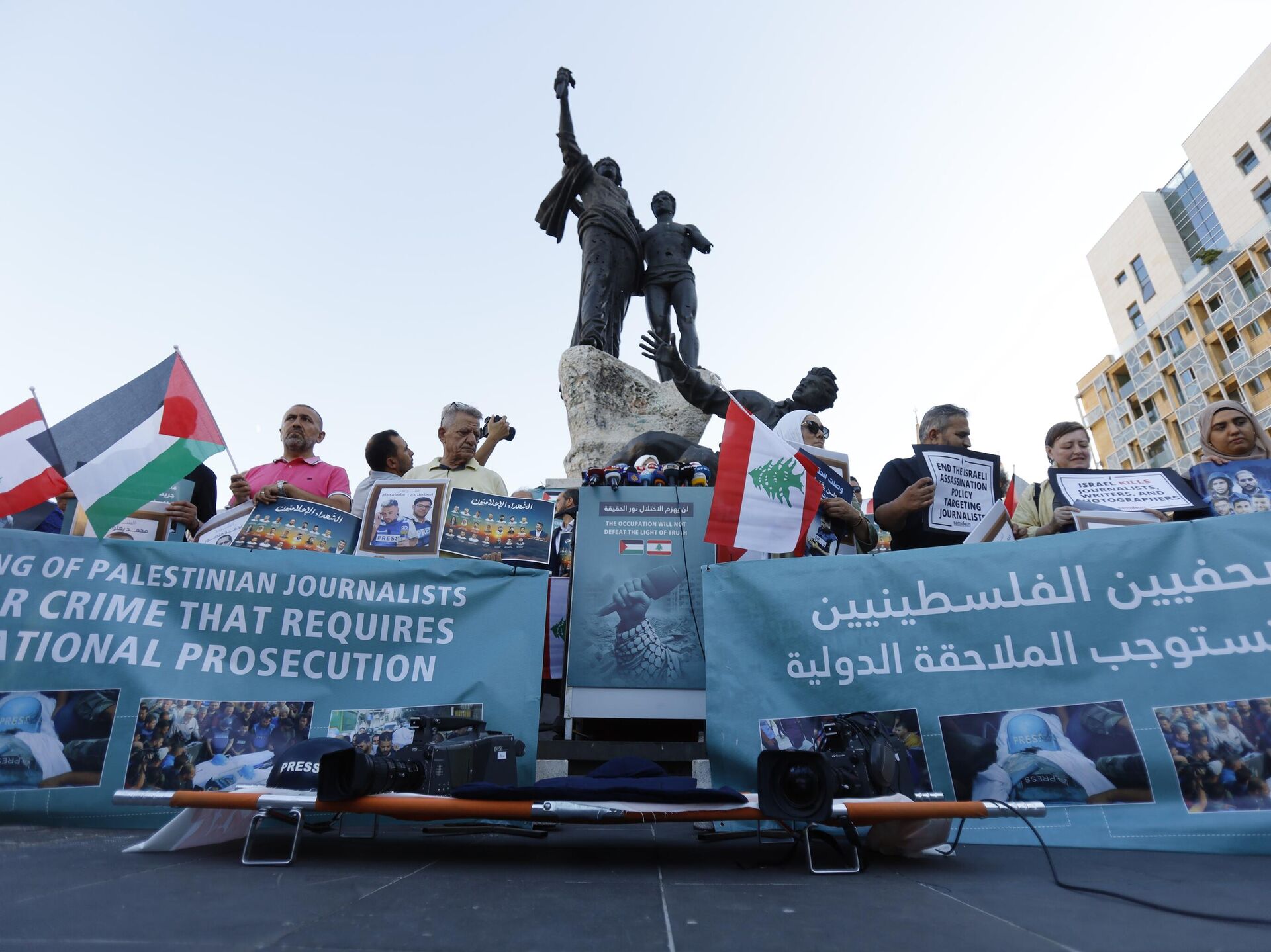 وقفة تضامنية في ساحة "الشهداء".. الصحافيون في بيروت يرفعون الصوت نصرة لزملائهم في غزة... صور
