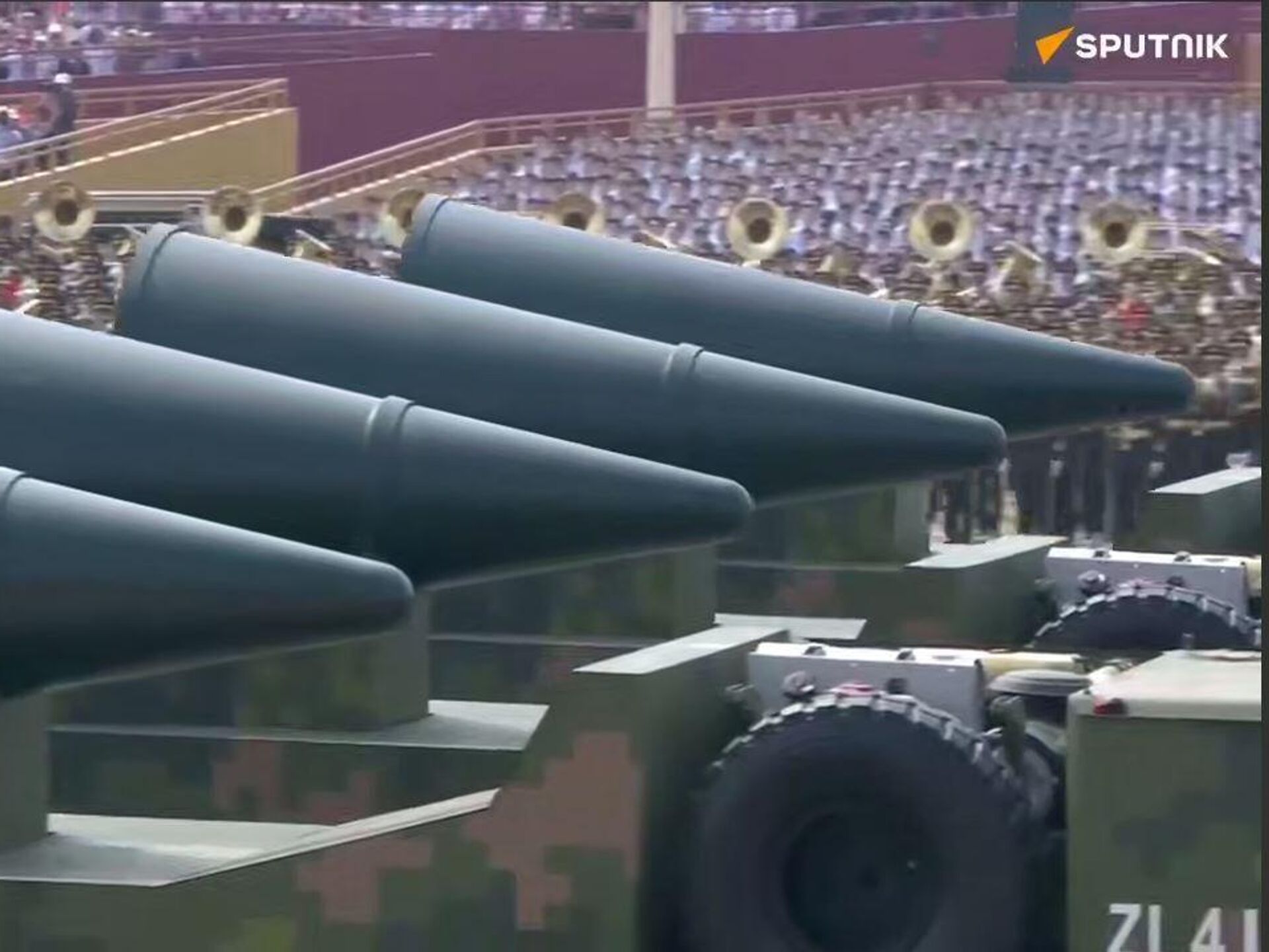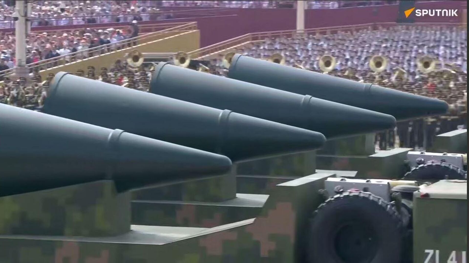 سبوتنيك" الصاروخ الصيني العابر للقارات "دي إف - 5 سي"، خلال استعراض مكوناته على مركبات في ساحة العرض العسكري في ميدان تيانانمن وسط العاصمة الصينية بكين.