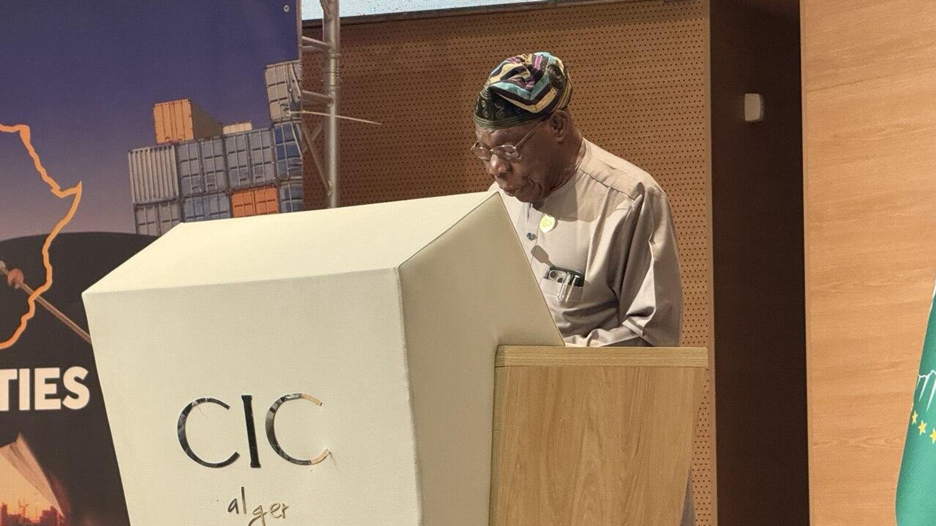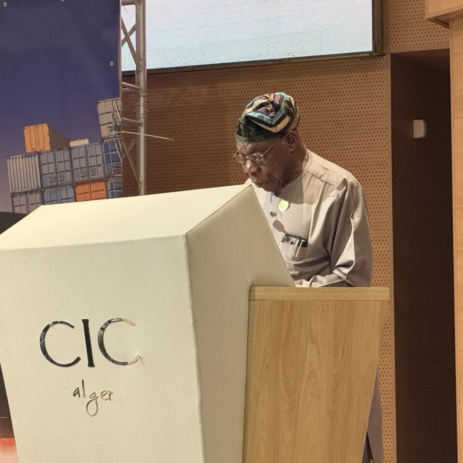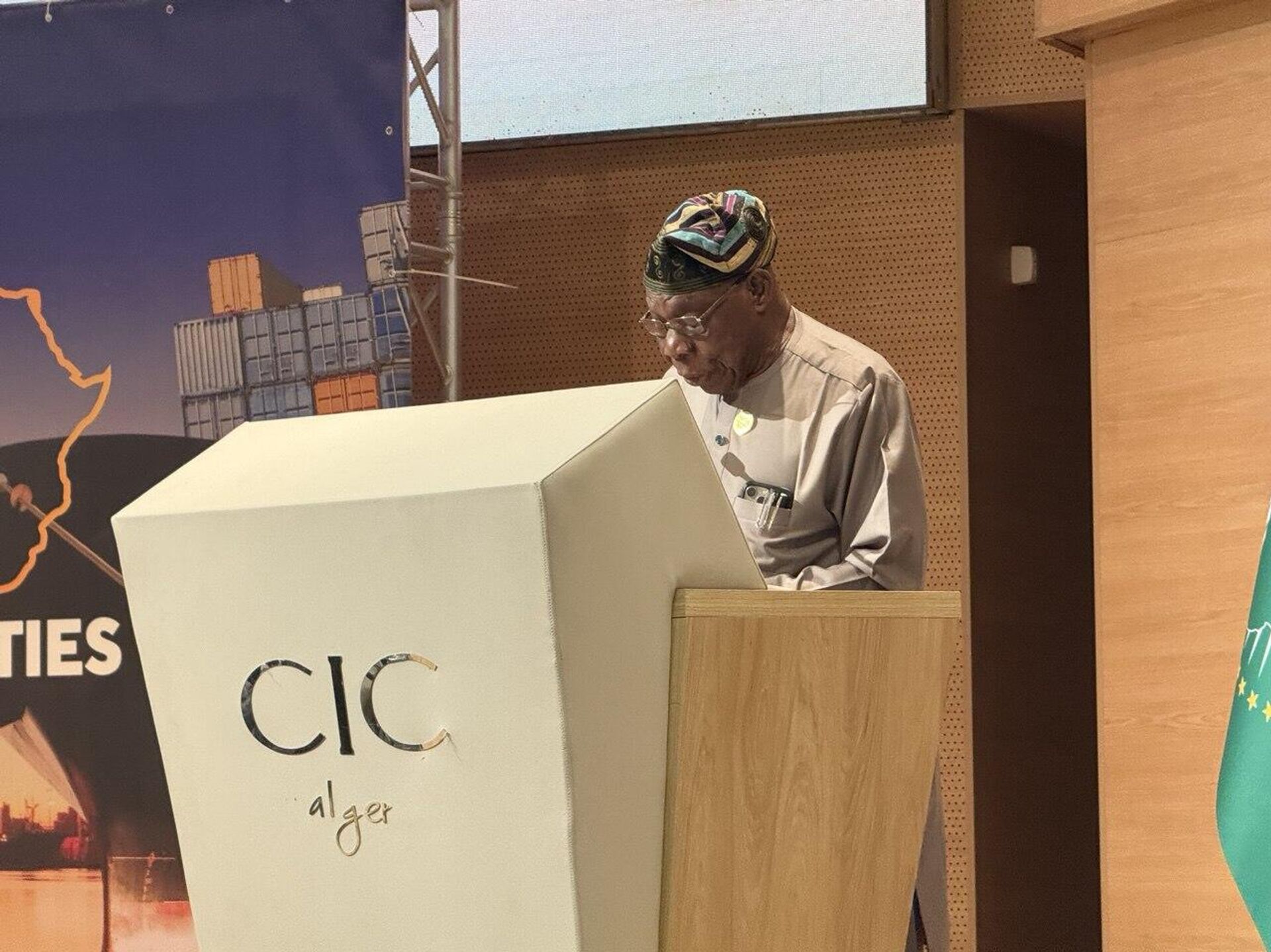 رئيس نيجيريا الأسبق، أوليسيجون أوباسانجو، يلقي كلمة في الدورة الرابعة لمعرض التجارة الأفريقية البينية بالجزائر