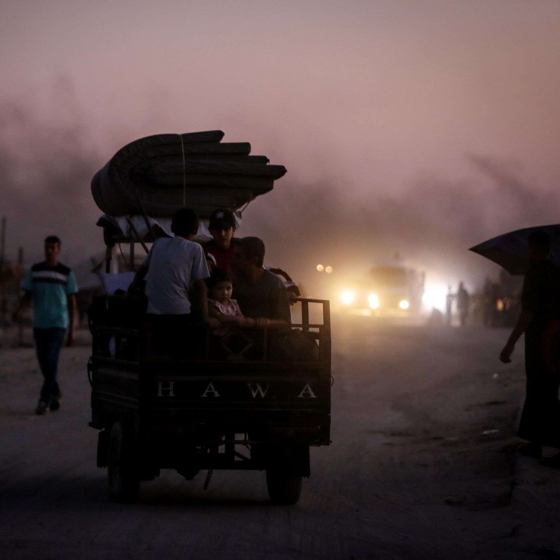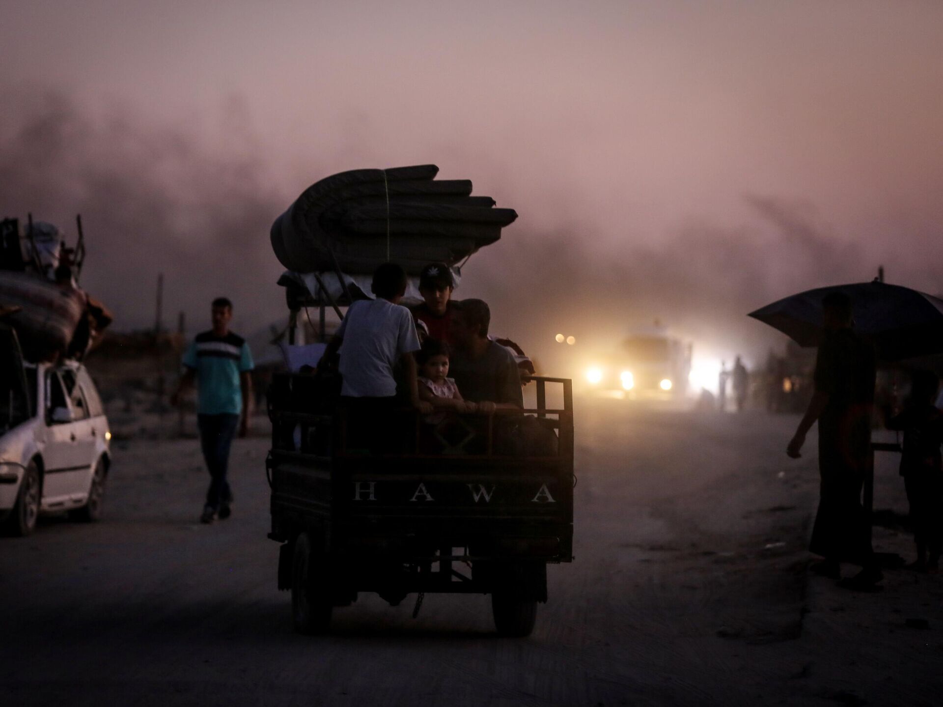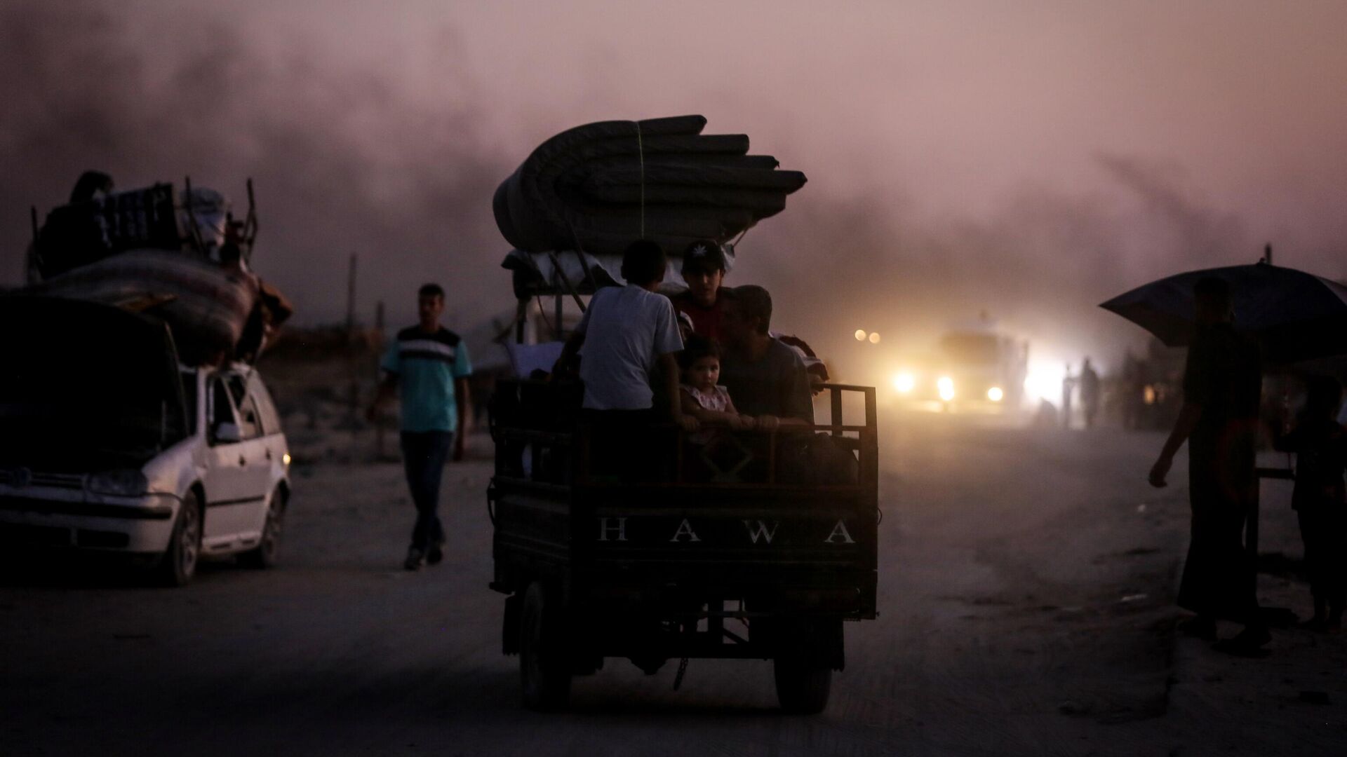 © Getty Images / Anadolu/Saeed M. M. T. Jarasنزوح الفلسطينيون نحو وسط مدينة غزة على طول شارع الرشيد في سيارات وعربات تجرها الخيول وعلى الأقدام مع متعلقاتهم بسبب الهجمات الإسرائيلية المتزايدة.