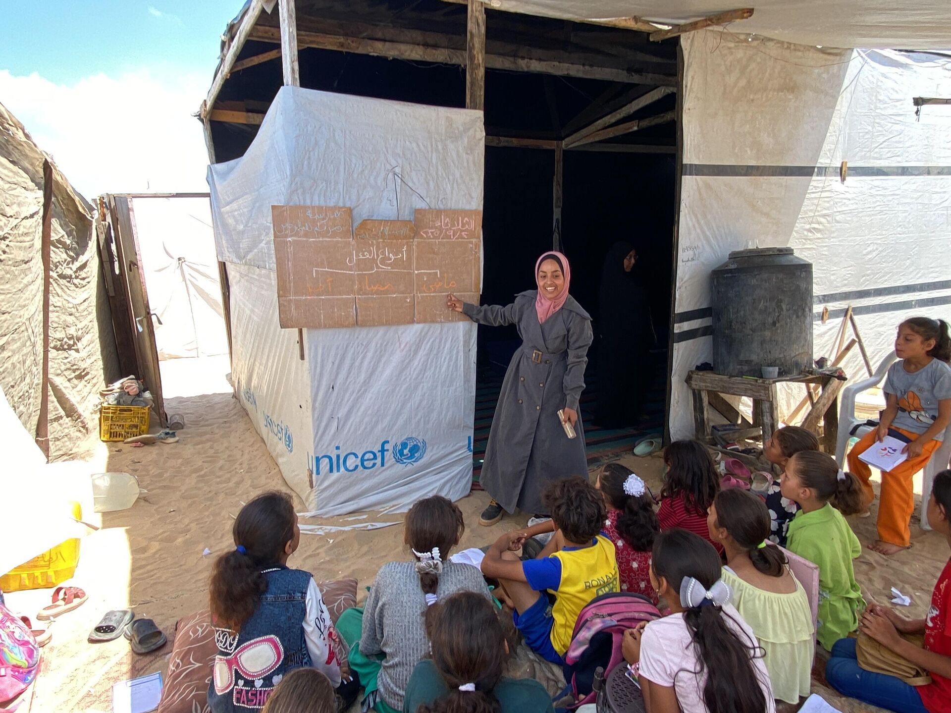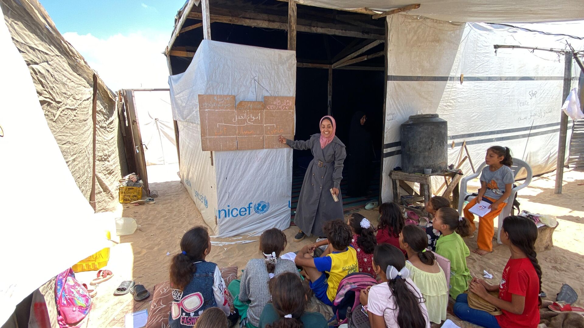 © Sputnik . Ajwad Jradatمبادرة مدرسة مريم لتعليم الأطفال النازحين في غزة