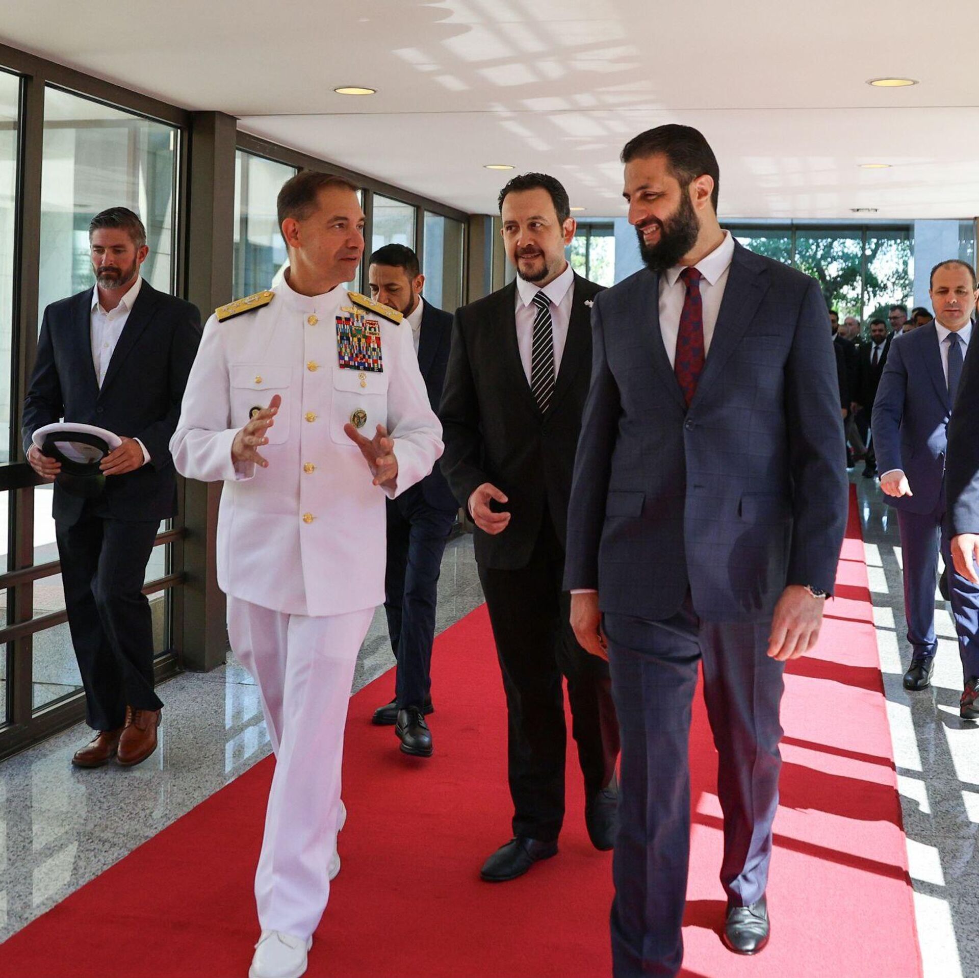 بحث الرئيس السوري للمرحلة الانتقالية أحمد الشرع، اليوم الجمعة، مع قائد القيادة المركزية الأمريكية الأدميرال تشارلز برادلي كوبر، والمبعوث الأمريكي إلى سوريا، توم براك، مسائل التعاون والأمن الإقليمي.
