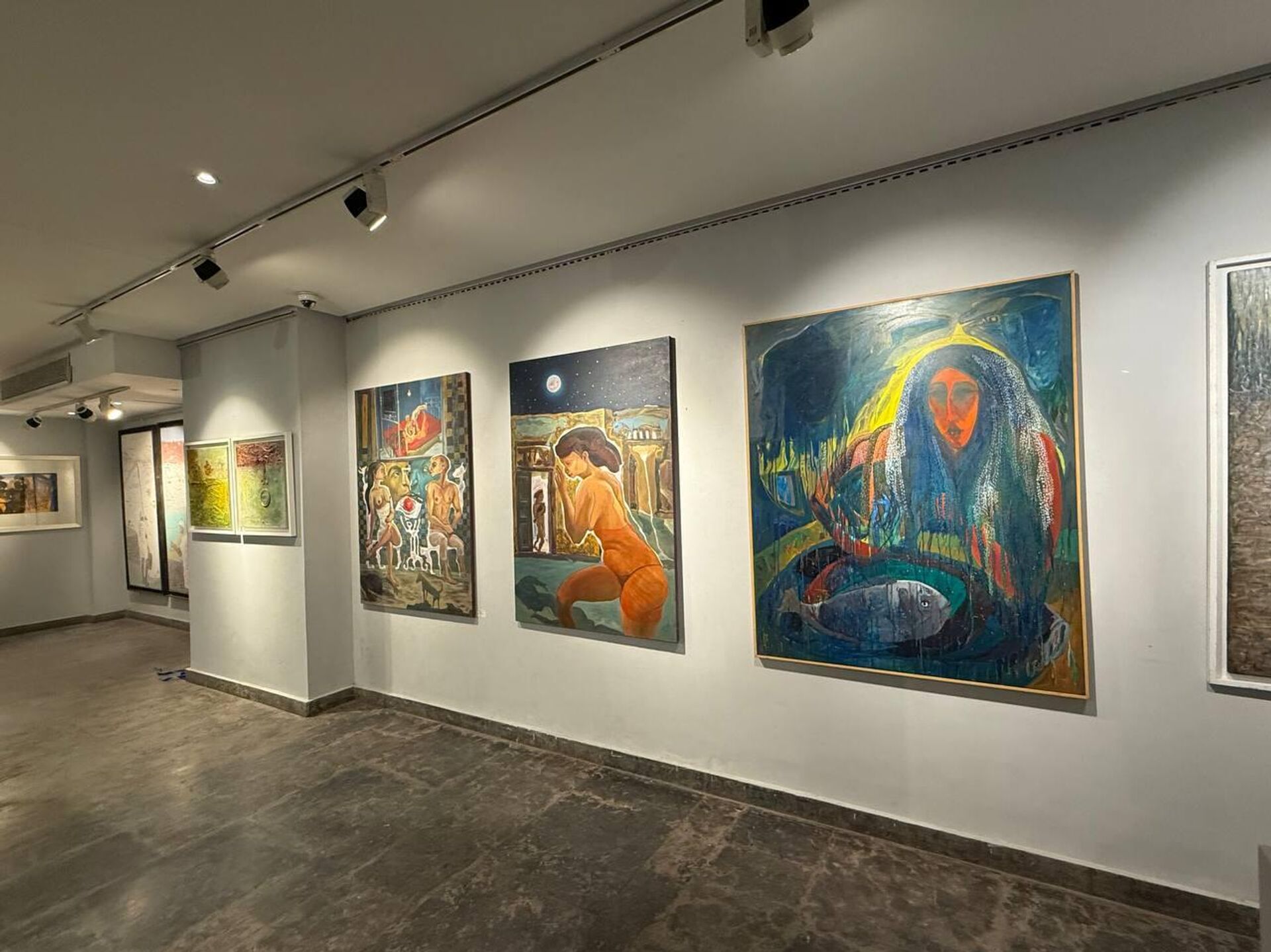 وأضاف أن المعرض يضم أيضا فنانين من فلسطين وسوريا، مشيرا إلى أن اللوحة الفلسطينية شاركت من خلال الفنان الفلسطيني عبد الله عريشة، والفنانة الفلسطينية أميرة مناح سليم، التي قدمت عملا تشكيليا في منتهى البراعة، بينما تناول عبد الله عريشة الوجه الفلسطيني الحزين عما يحدث الآن في غزة.