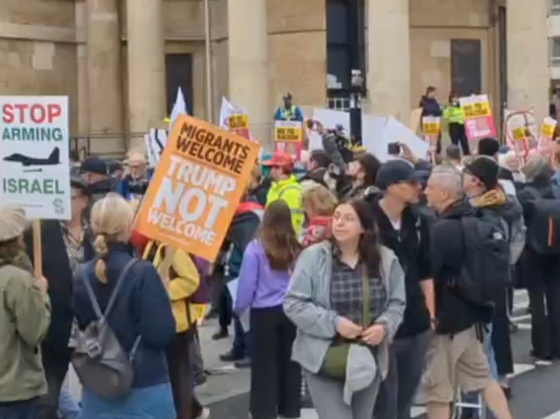 وأشار المراسل إلى أن المتظاهرين بدأوا بالتجمع في ساحة بورتلاند بالقرب من مقر هيئة الإذاعة البريطانية (BBC). ومن المتوقع أن ينتقل حشد من الآلاف منهم بعد ذلك إلى ساحة البرلمان، حيث سينظمون تجمعًا حاشدًا.وحمل المتظاهرون لافتات كتب عليها "يسقط ترامب"، و"لا للعنصرية، لا لترامب"، و"أوقفوا ترامب"، و"تسقط أسلحة ترامب النووية"، و"أوقفوا الإبادة الجماعية في غزة"، بالإضافة إلى صور ساخرة لترامب وهو طفل ساخط.ولأن ترامب موجود في قلعة وندسور فلن يرى التظاهرة في وسط لندن. ووفقًا لتقارير إعلامية بريطانية، فقد خُطط مسار الرئيس بعناية لتجنب الاحتجاجات.ووصل الرئيس الأمريكي دونالد ترامب إلى قلعة وندسور، حيث كان في استقباله ملك بريطانيا تشارلز الثالث، وذلك بعدما وصل البلاد، مساء أمس الثلاثاء، في زيارة رسمية تستمر عدة أيام.إقالة السفير البريطاني لدى الولايات المتحدة الأمريكيةإعلام: ترامب يتجه لرفع حظر السفر بين أمريكا وبريطانيا