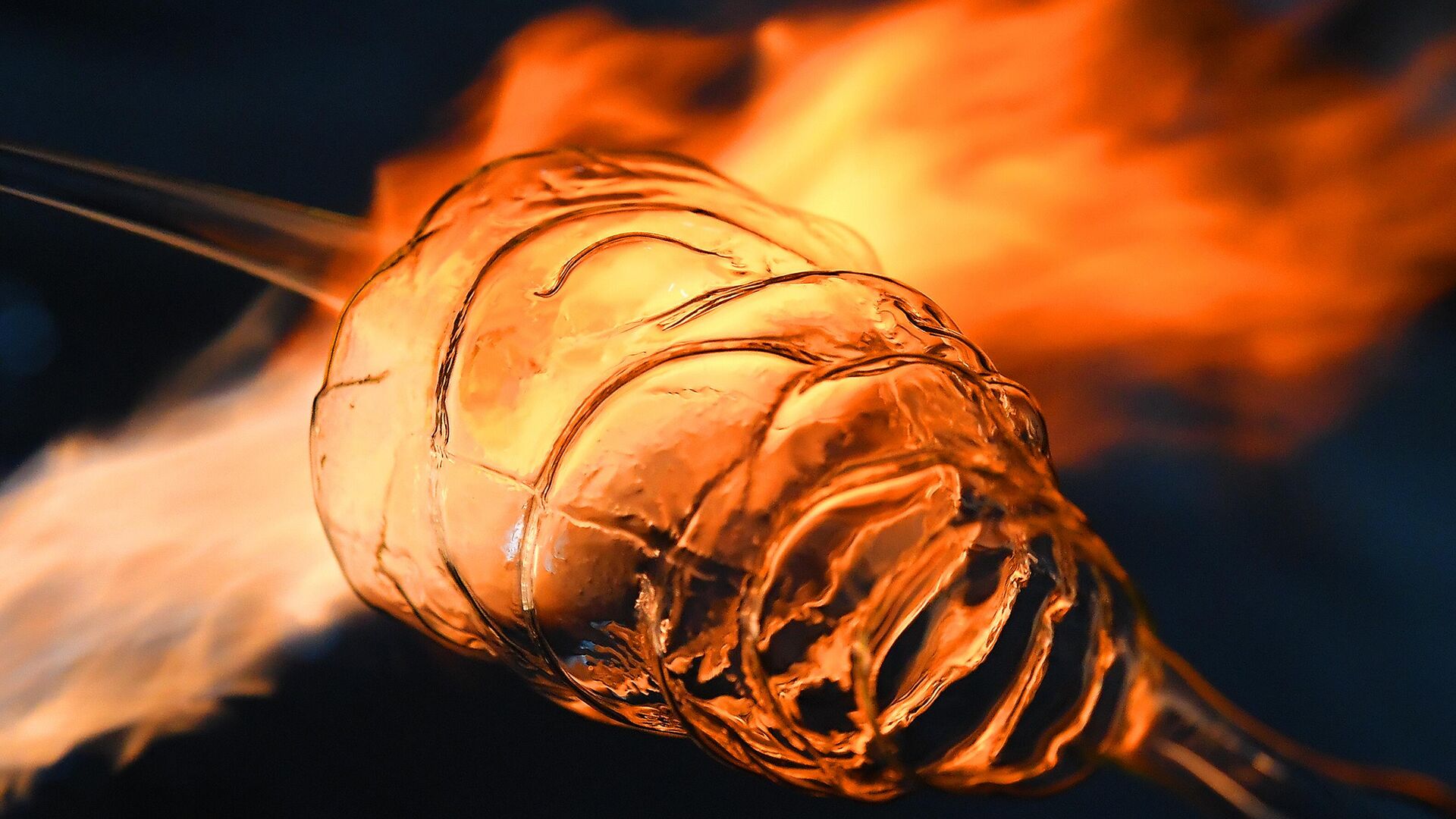 © Sputnik . Ilya Naymushin / الانتقال إلى بنك الصورنافخ زجاج يصنع زخرفة زجاجية للعام الجديد في مصنع بيريوسينكا للألعاب في كراسنويارسك