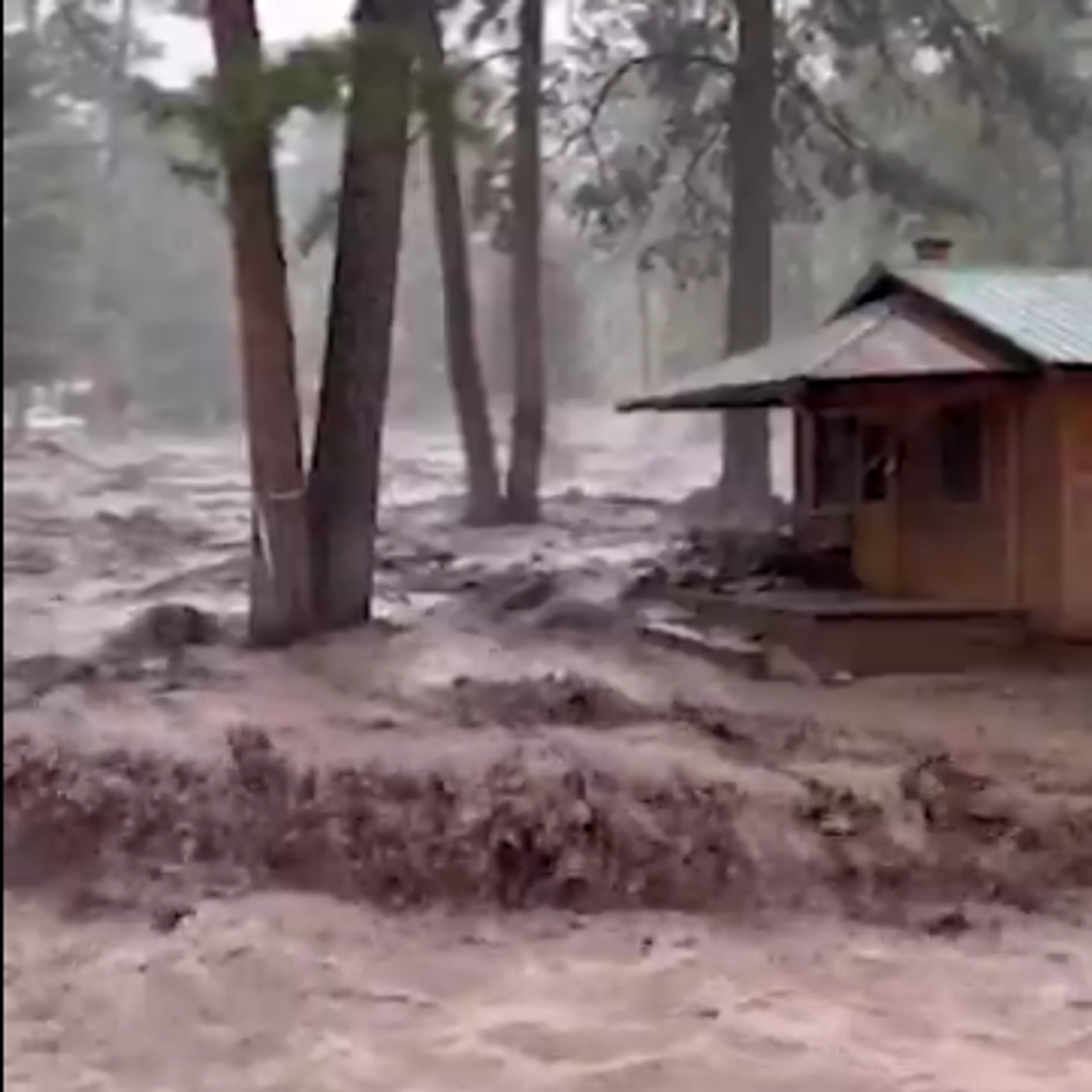 With no absorption from the burn scars, the water races downhill into town.