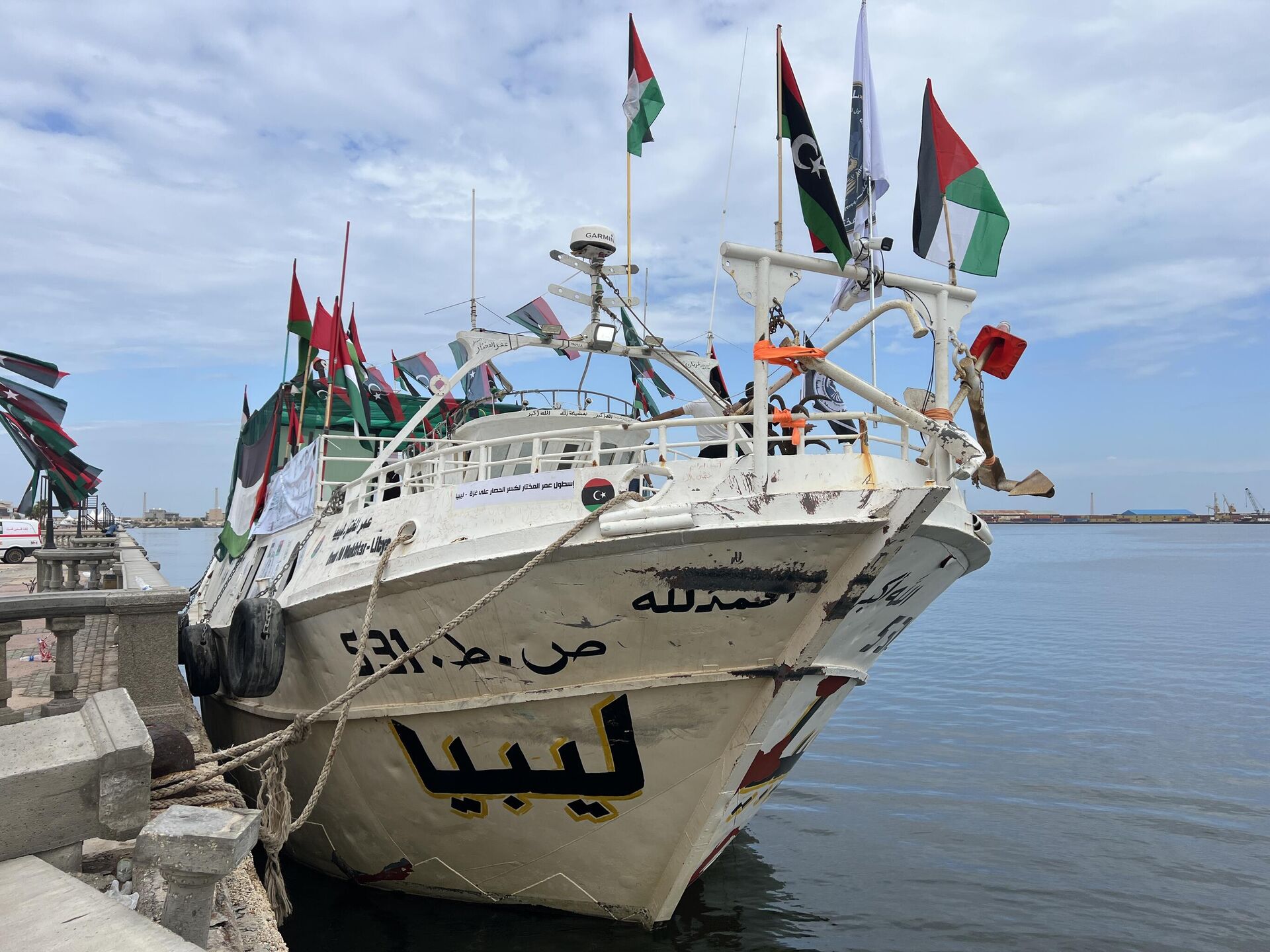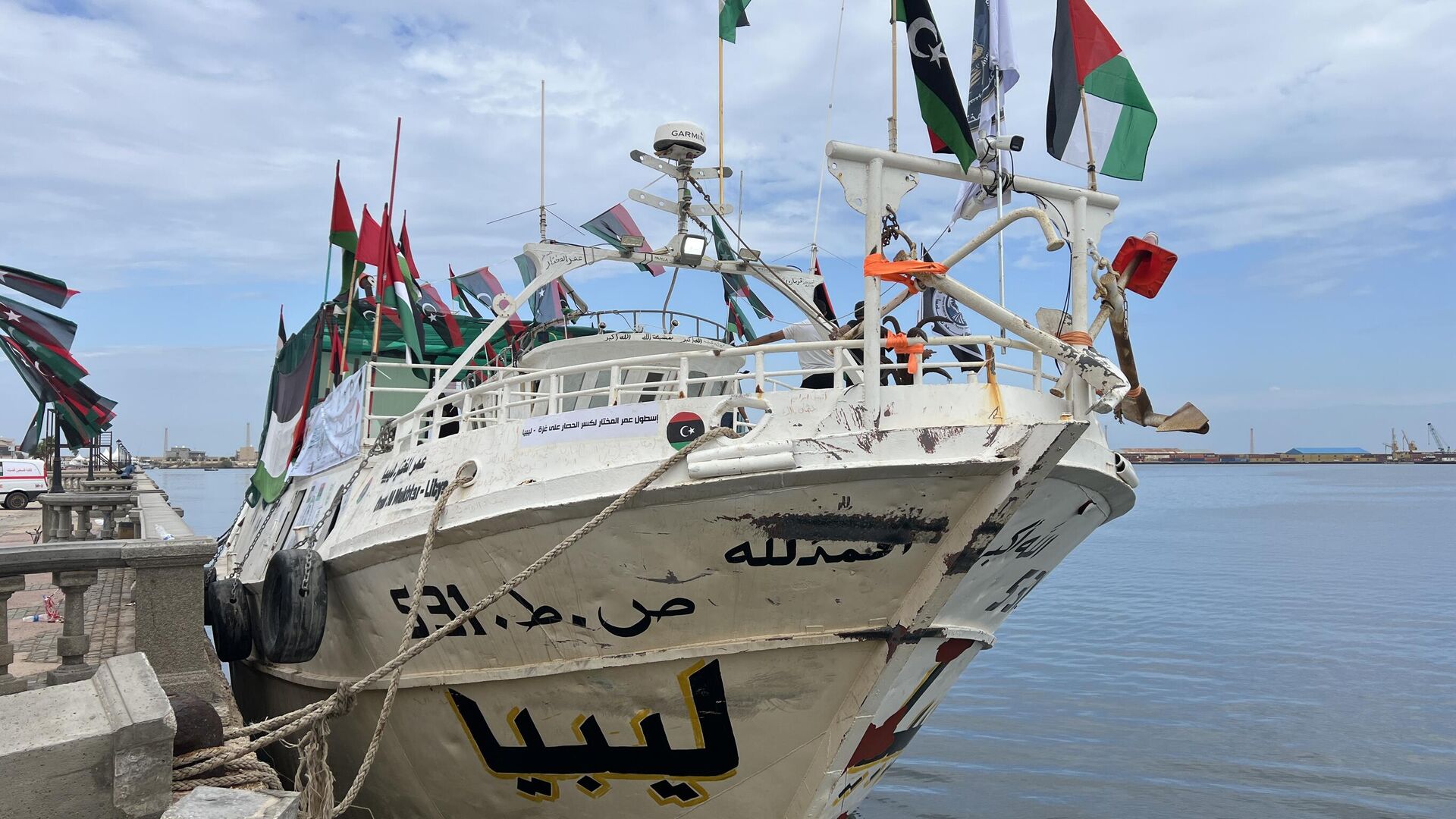سفينة "عمر المختار" تستعد للإبحار من طرابلس نحو غزة لكسر الحصار... صور