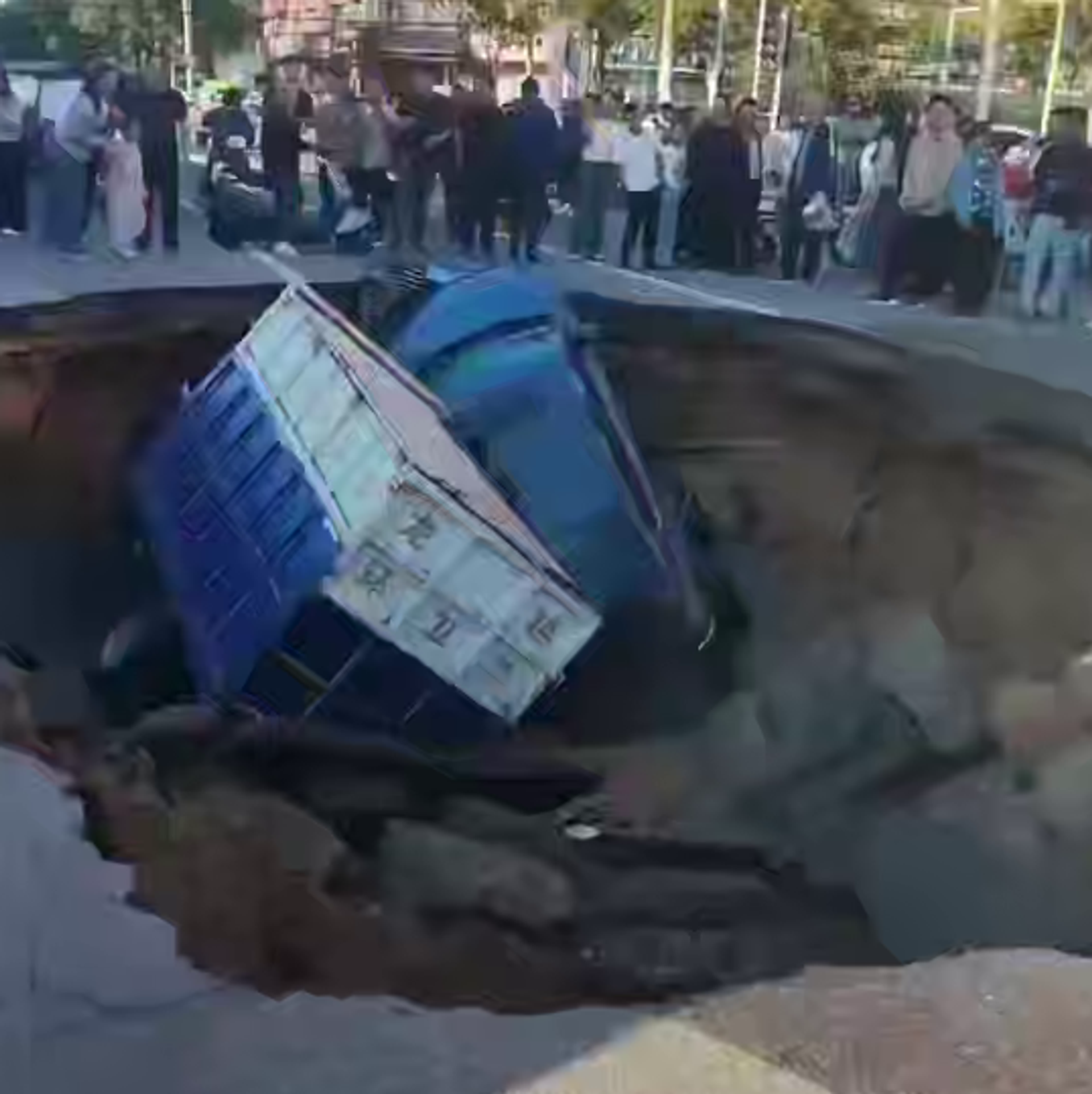وشهدت مدينة تشوكو، التي يقدر عدد سكانها بنحو 10 ملايين نسمة وتقع في مقاطعة خنان وسط الصين، حادثة هبوط أرضي مفاجئة على أحد الطرق الرئيسية.