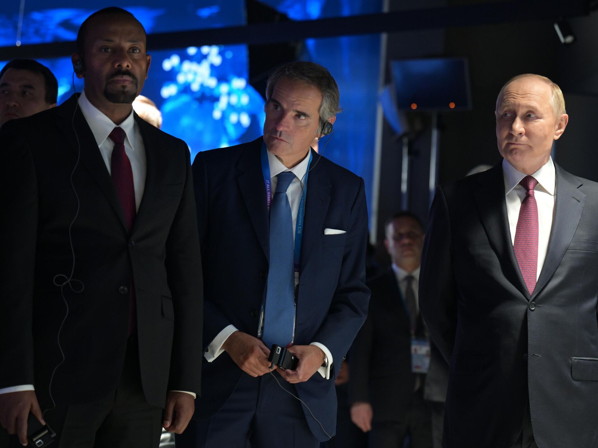 بحث بوتين مع المدير العام للوكالة رافائيل غروسي سبل تعزيز التعاون بين روسيا والوكالة الدولية للطاقة الذرية. وأعرب الرئيس الروسي عن شكره لغروسي على زيارته ومشاركته في المنتدى، مشيراً إلى أن التعاون بين الجانبين قائم في معظم المجالات، بما في ذلك مجال السلامة النووية.