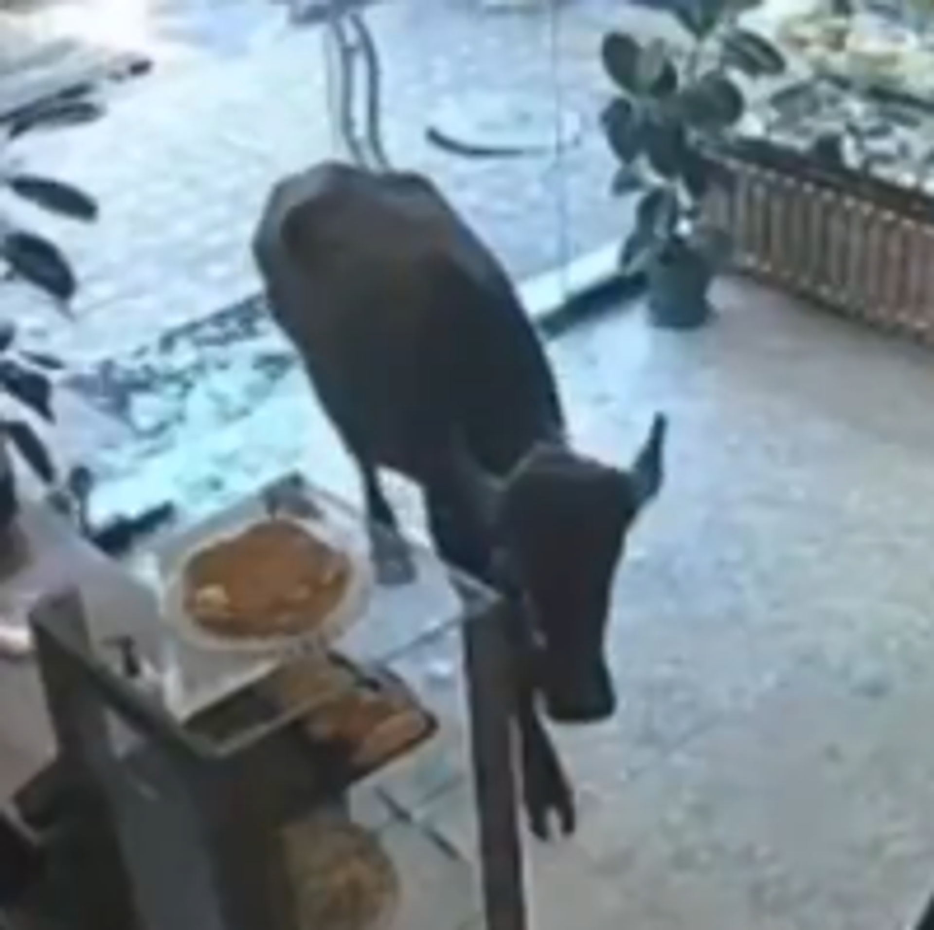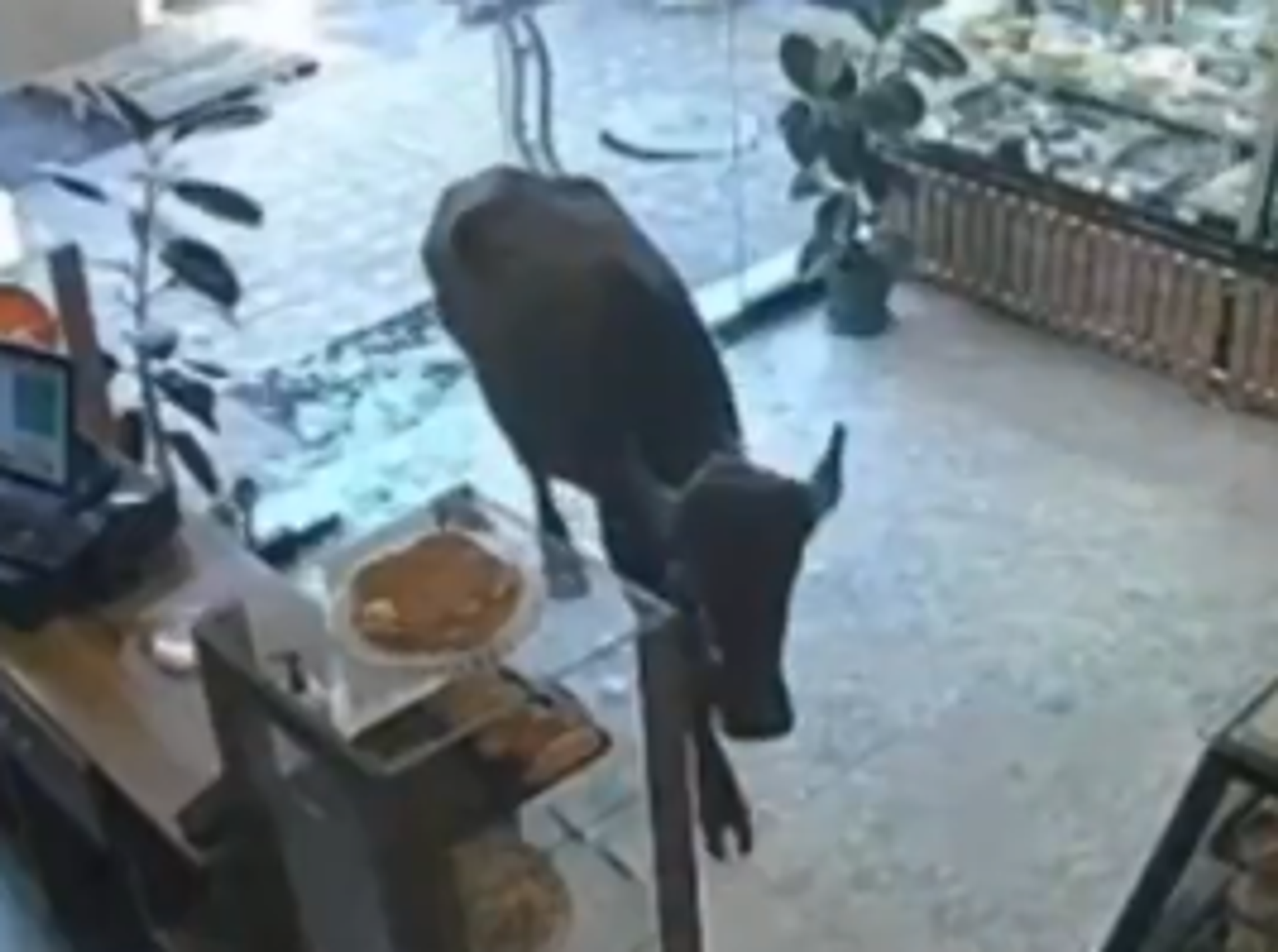 في حادثة غريبة... بقرة تهاجم متجر حلويات في أذربيجان والشرطة تتدخل.. فيديو