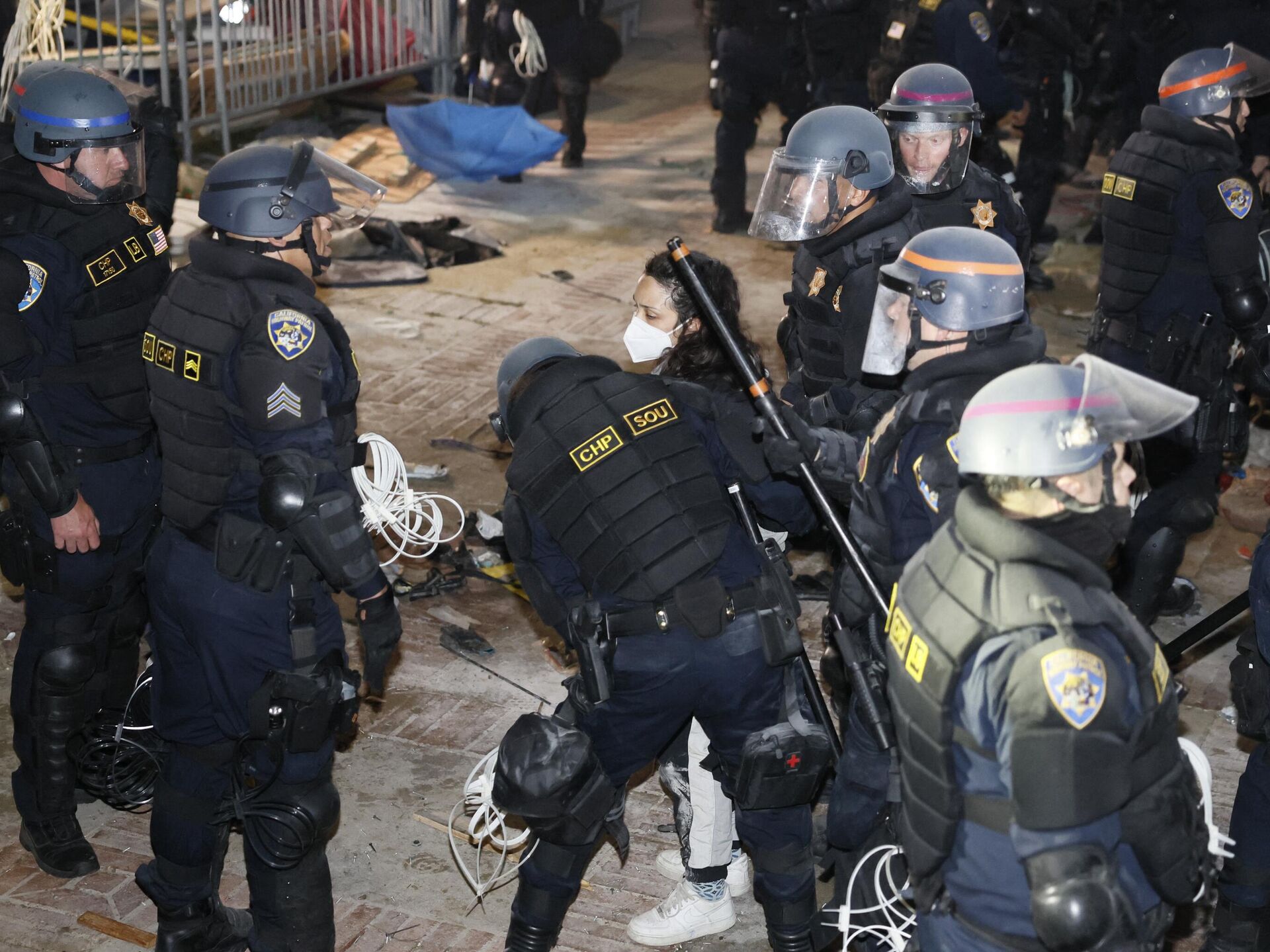 © AFP 2023 / ETIENNE LAURENTالشرطة الأمريكية تعتقل أحد المؤيدين لفلسطين في حرم جامعة كاليفورنيا، لوس أنجلوس في 2 مايو، 2024