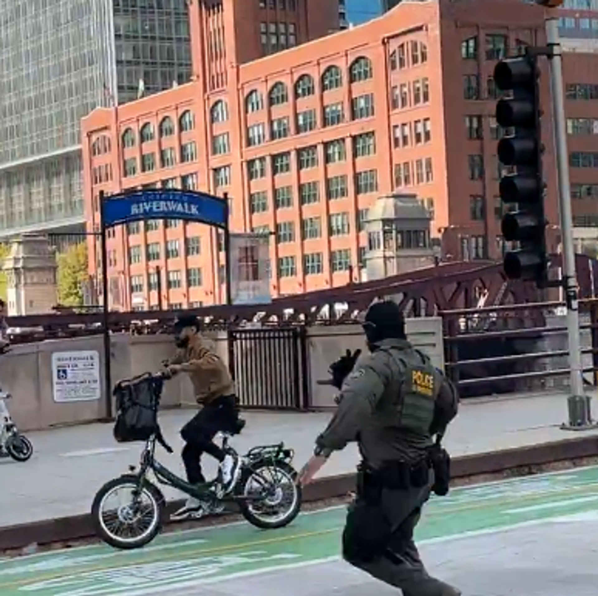 تمكن عامل توصيل طلبات يستقل دراجة هوائية من الإفلات من محاولة اعتقال نفذها عشرات العناصر التابعين لوكالة الهجرة والجمارك الأمريكية، في حادثة أثارت انتباه المارة وشغلت وسائل التواصل الاجتماعي.