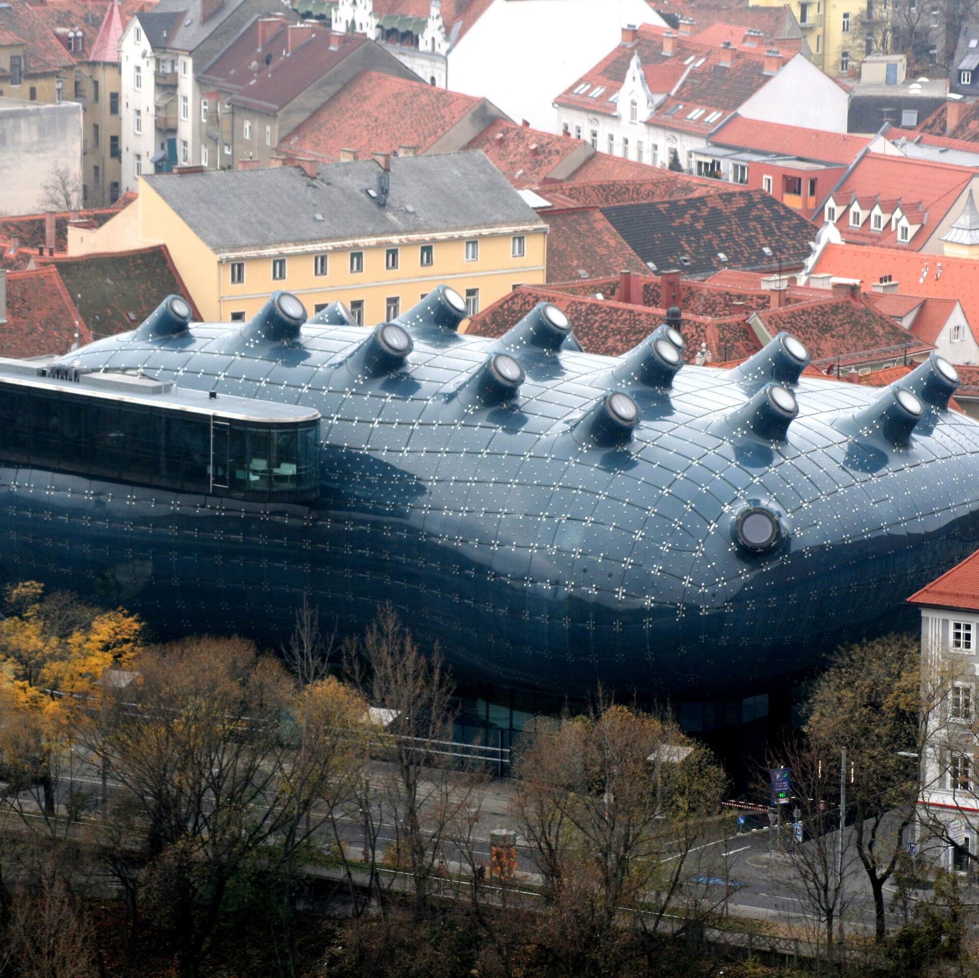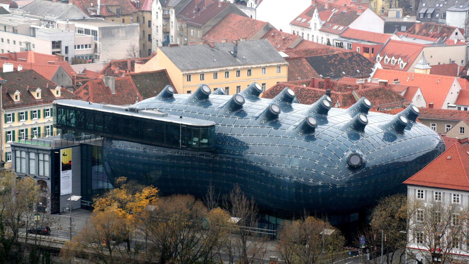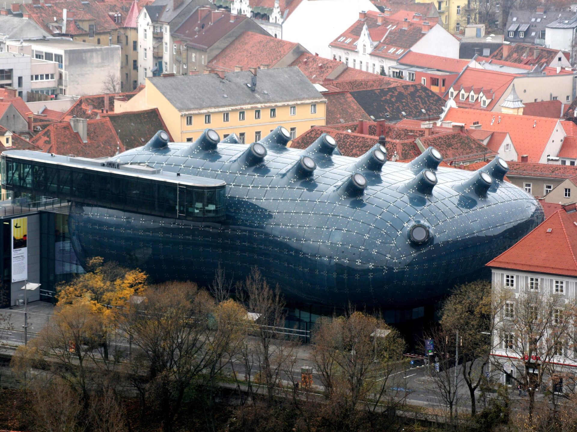 معرض فني في النمسا، يختلف بشكل كبير عن المباني القريبه منه، ويشبه قلب روبوت.
