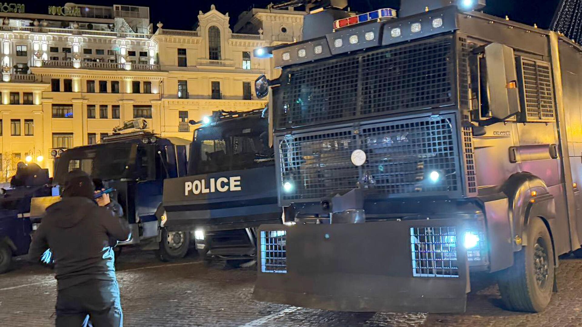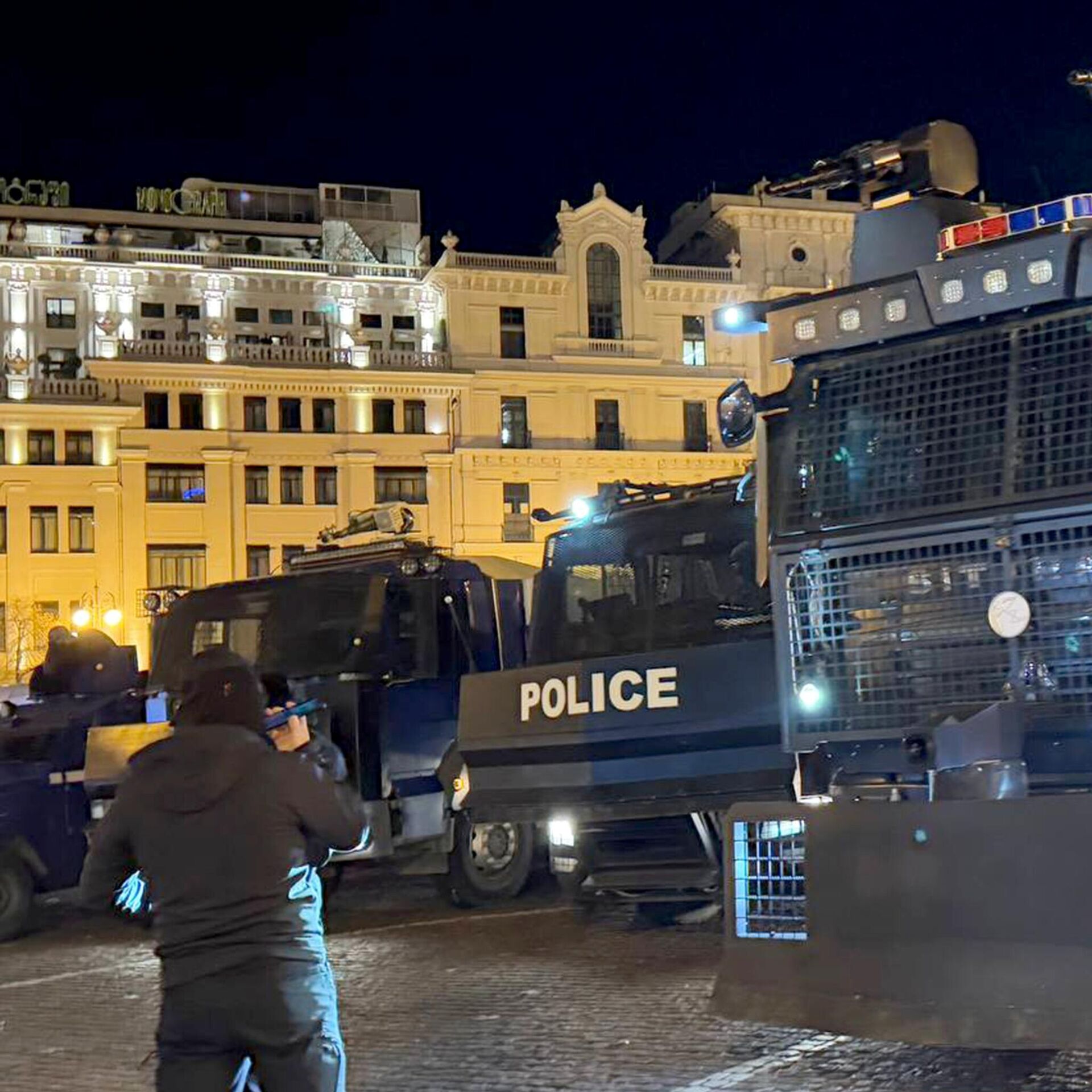 اقتحم محتجون فناء القصر الرئاسي ومقر إقامة الرئيس الجورجي ميخائيل كافيلاشفيلي، في العاصمة تبليسي، مخترقين حواجز التأمين الحديدية، فيما استخدمت القوات الخاصة المكلفة بحراسة المقر رذاذ الفلفل لتفريقهم، حسبما أفادت قناة "بيرفيلي" الجورجية.