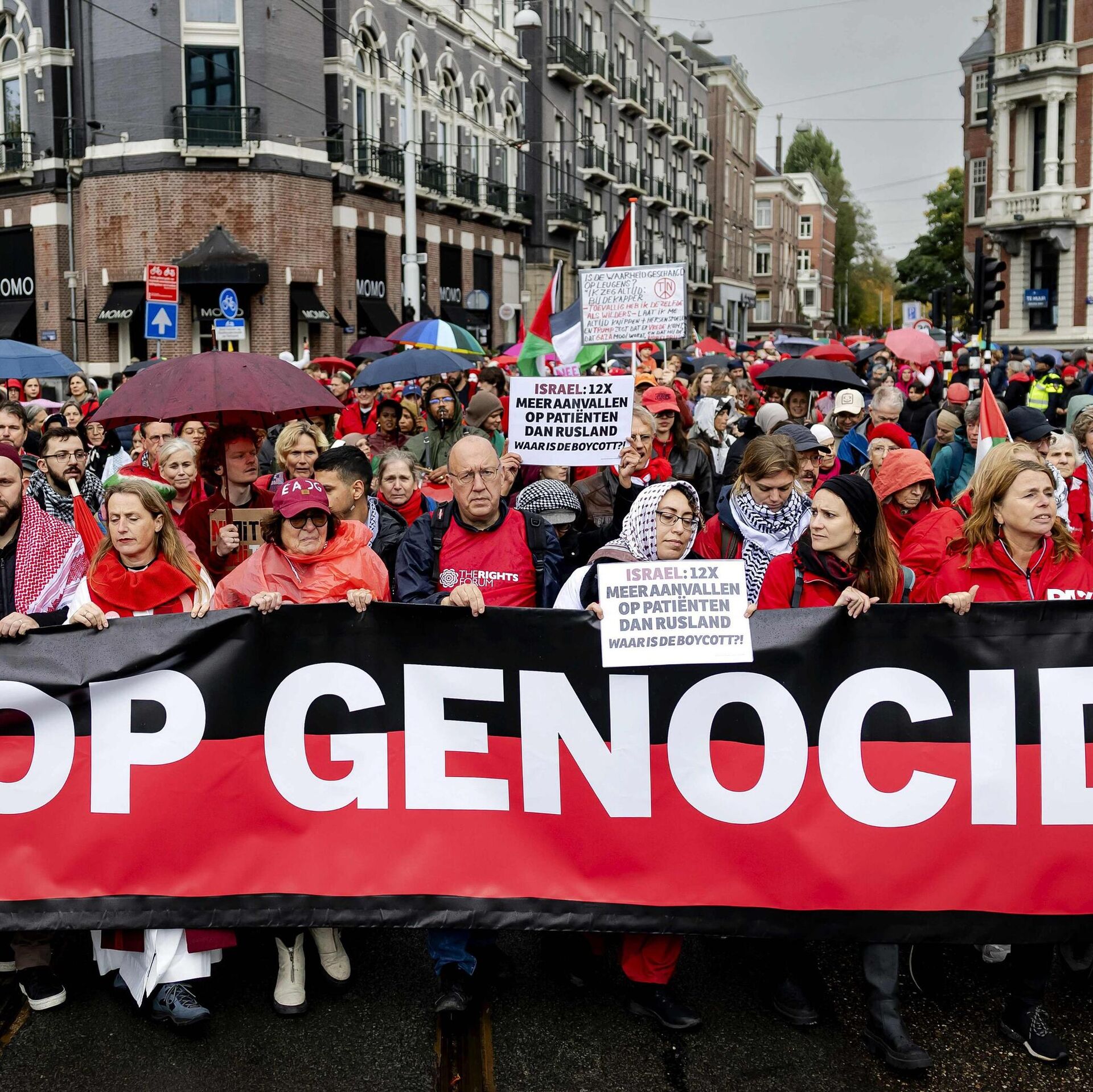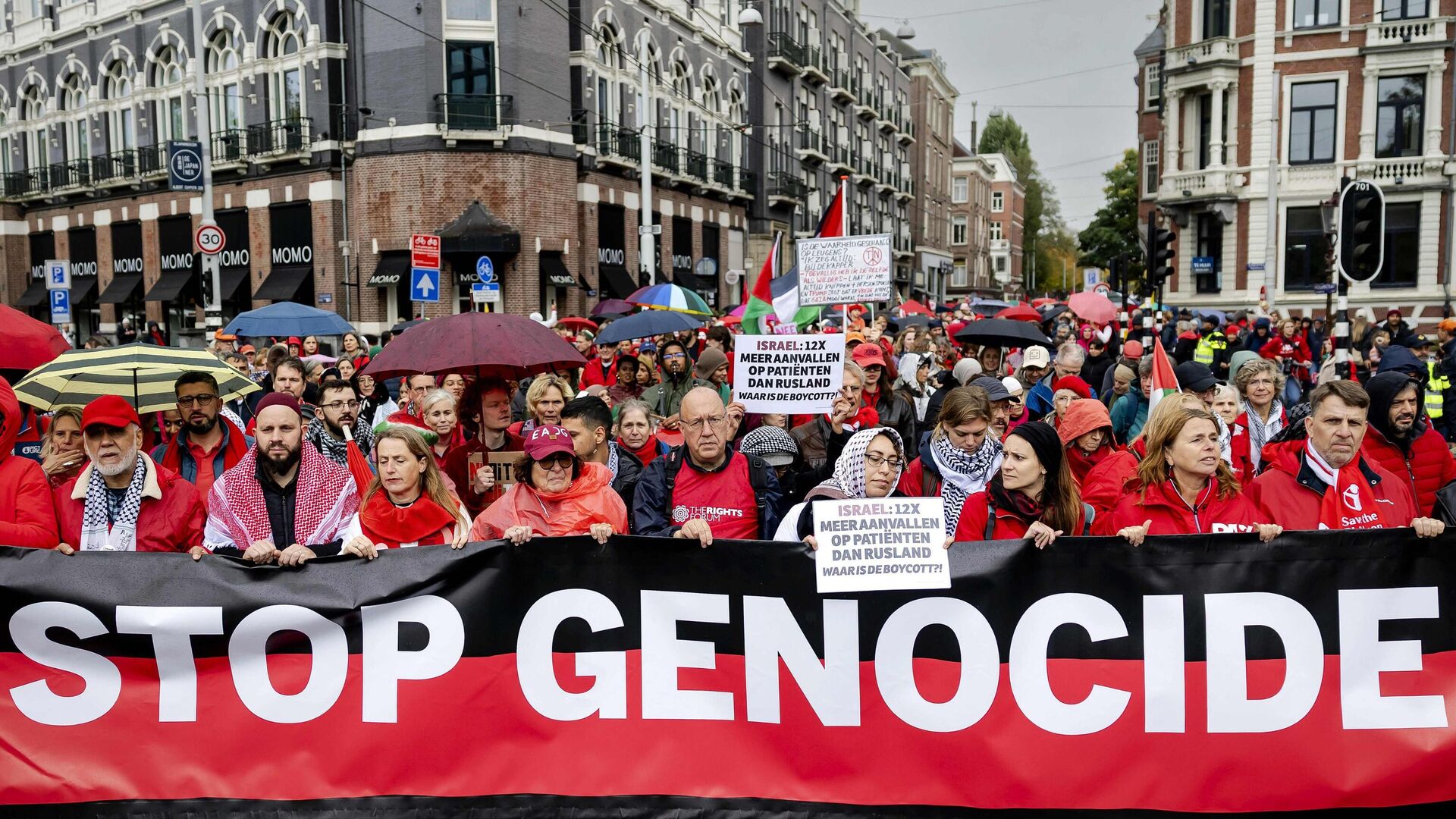 تظاهر نحو 250 ألف شخص في العاصمة الهولندية، أمستردام، اليوم الأحد، دعماً لفلسطين وضد السياسة الهولندية تجاه إسرائيل.
