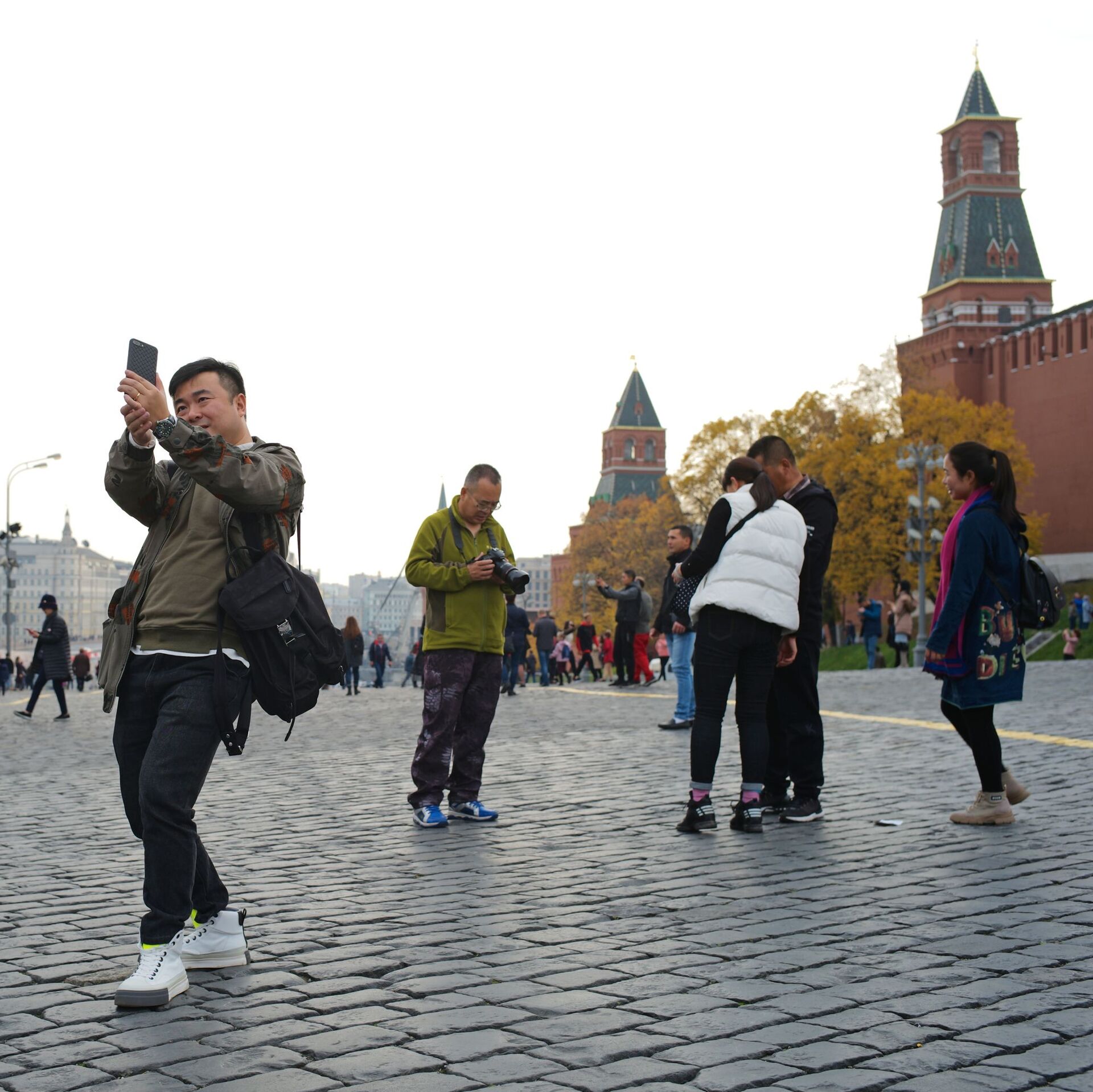 © Sputnik . Sergey Pyatakov / الانتقال إلى بنك الصورسائح يلتقط صورة سيلفي على الساحة الحمراء في موسكو