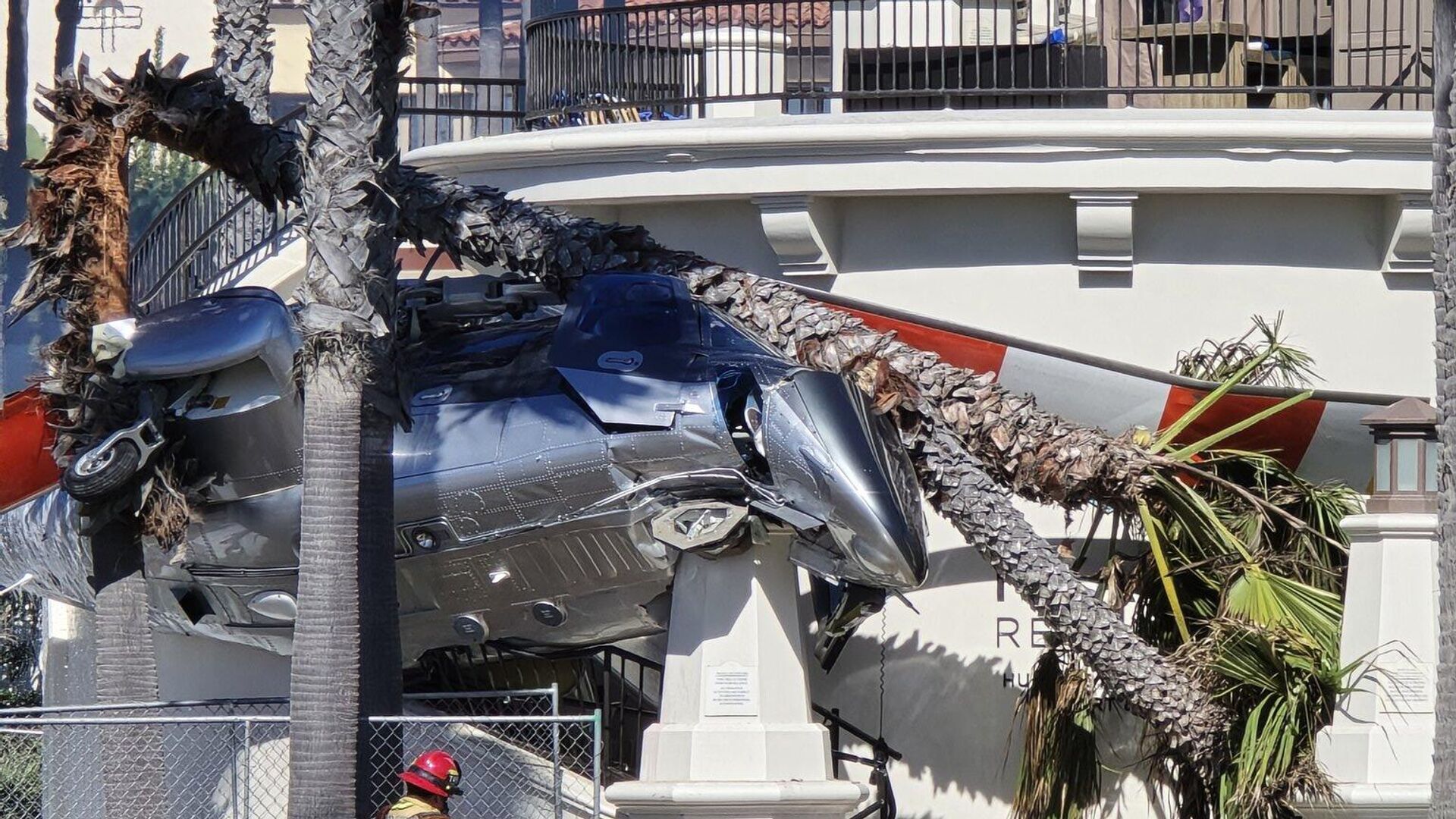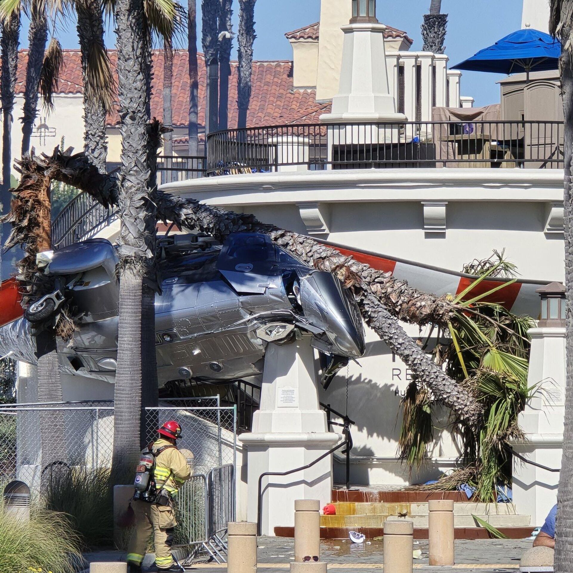 أصيب 5 أشخاص خلال سقوط مروحية كانت تشارك في عرض جوي في مدينة هنتنغتون بيتش بولاية كاليفورنيا الأمريكية. 12.10.2025, سبوتنيك عربي
