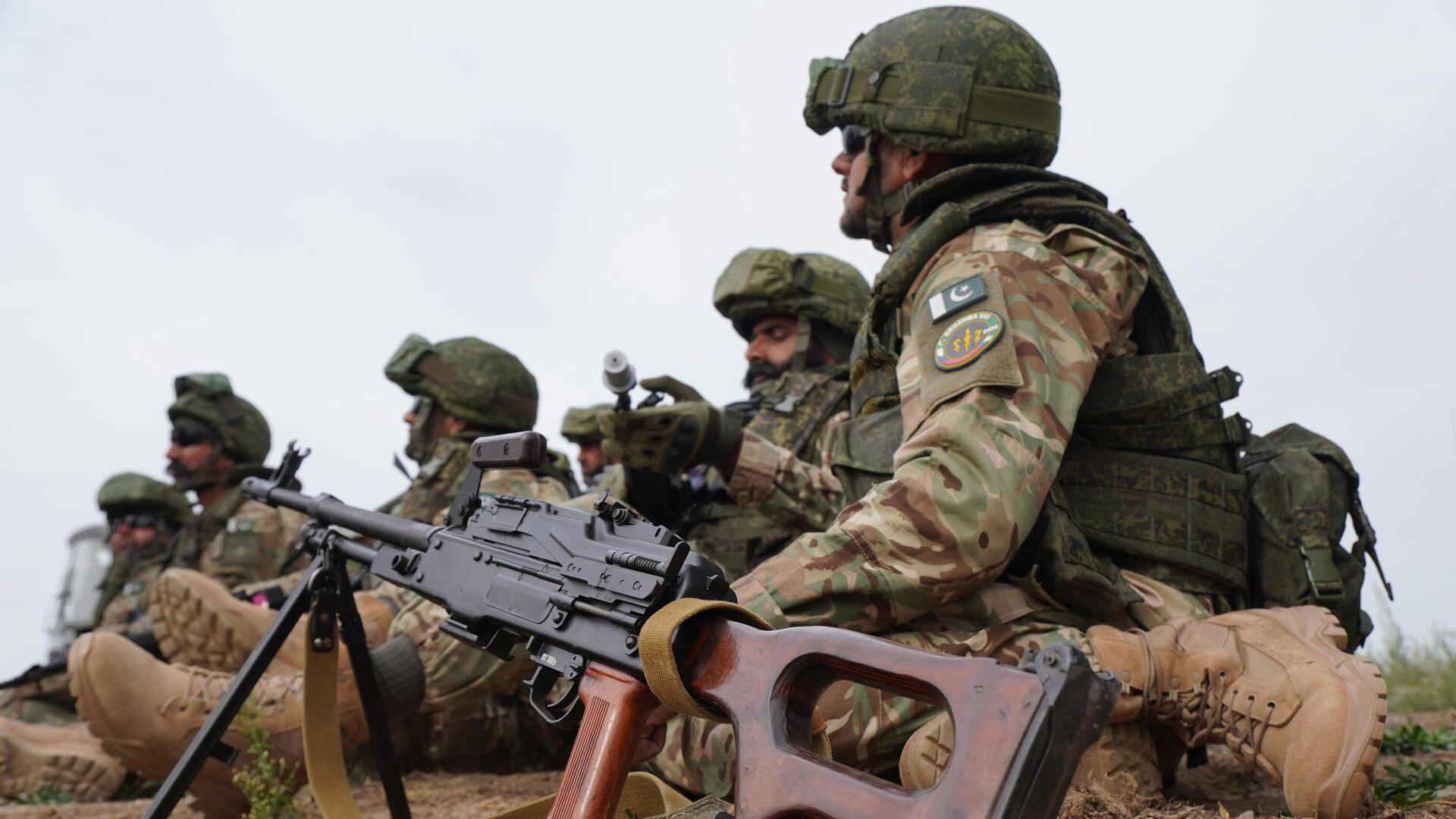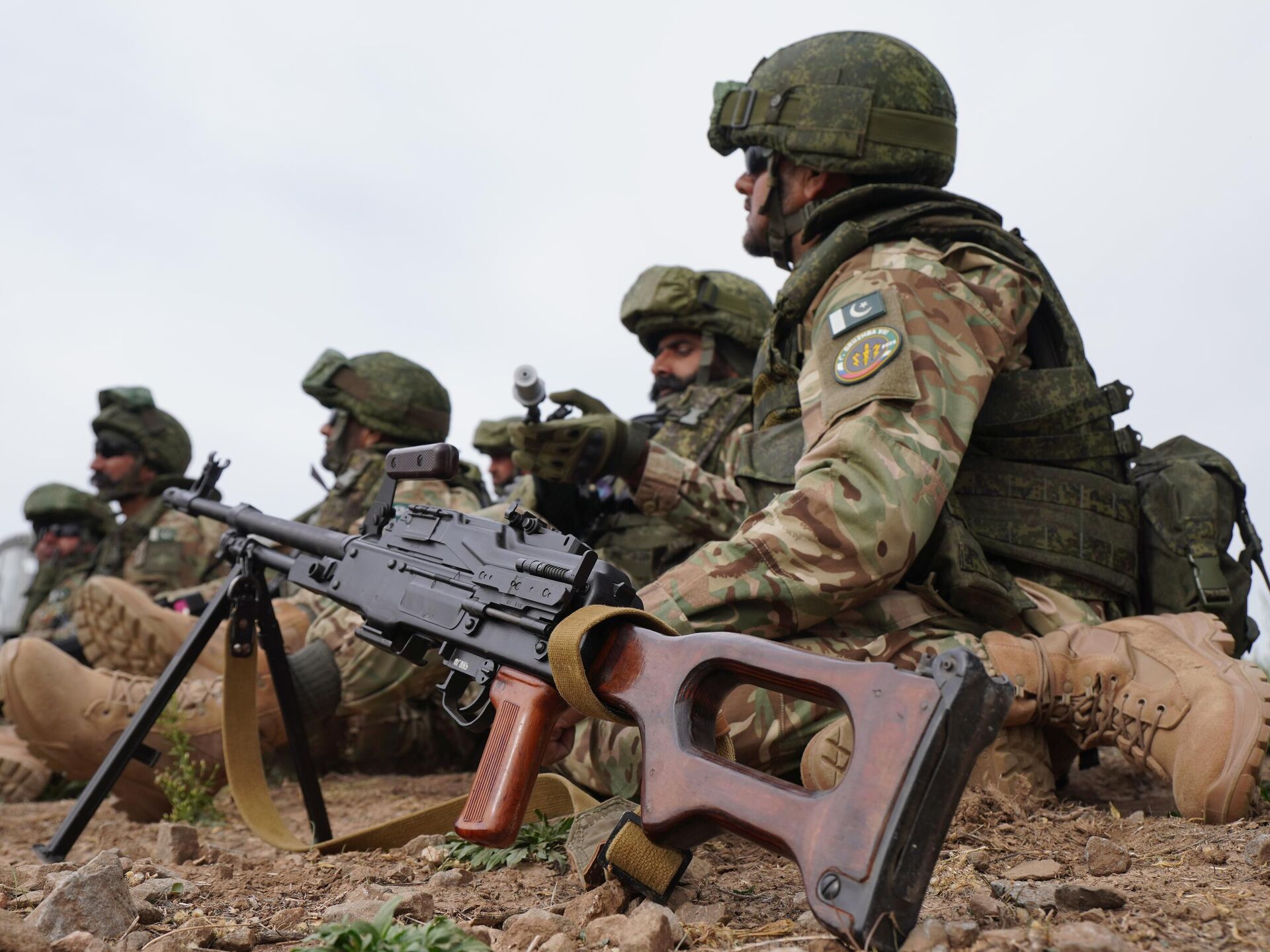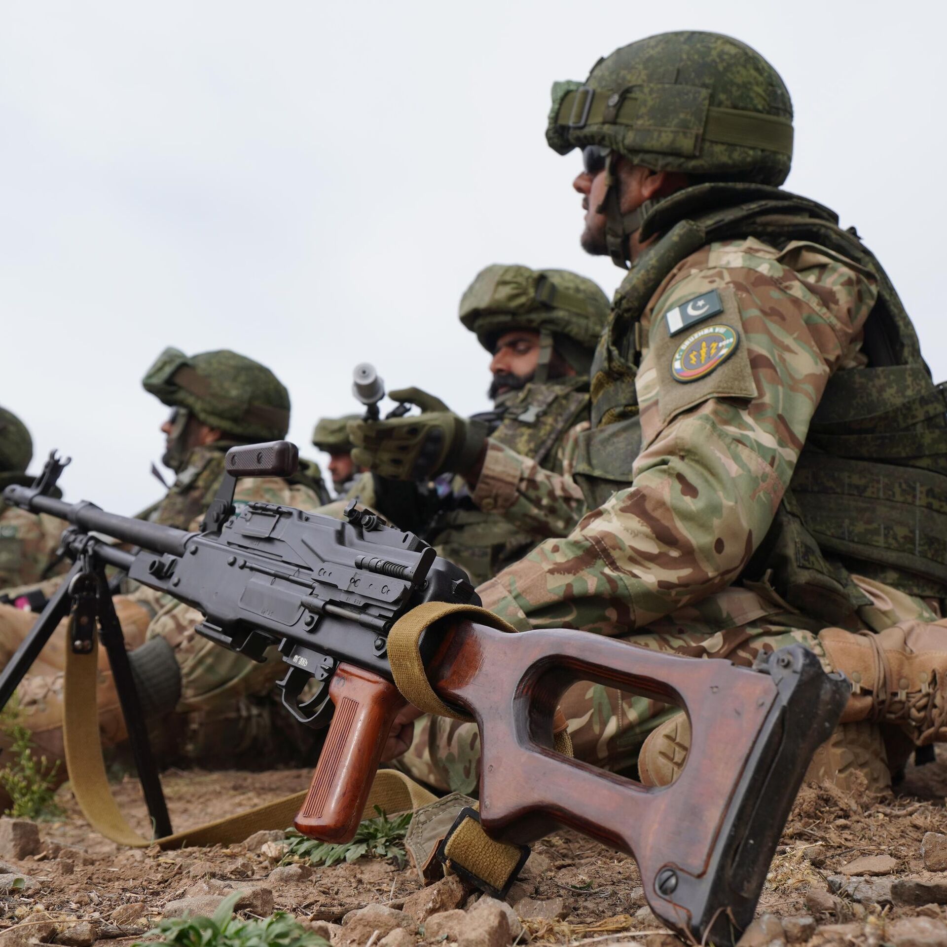 © Sputnik . Ministry of Defense of the Russian Federation / الانتقال إلى بنك الصور مجموعة من العسكريين الروس أثناء مناورات عسكرية مشتركة مع باكستان ي المنطقة العسكرية الجنوبية. وتدربت القوات المسلحة لكلا البلدين على عمليات مكافحة الإرهاب.