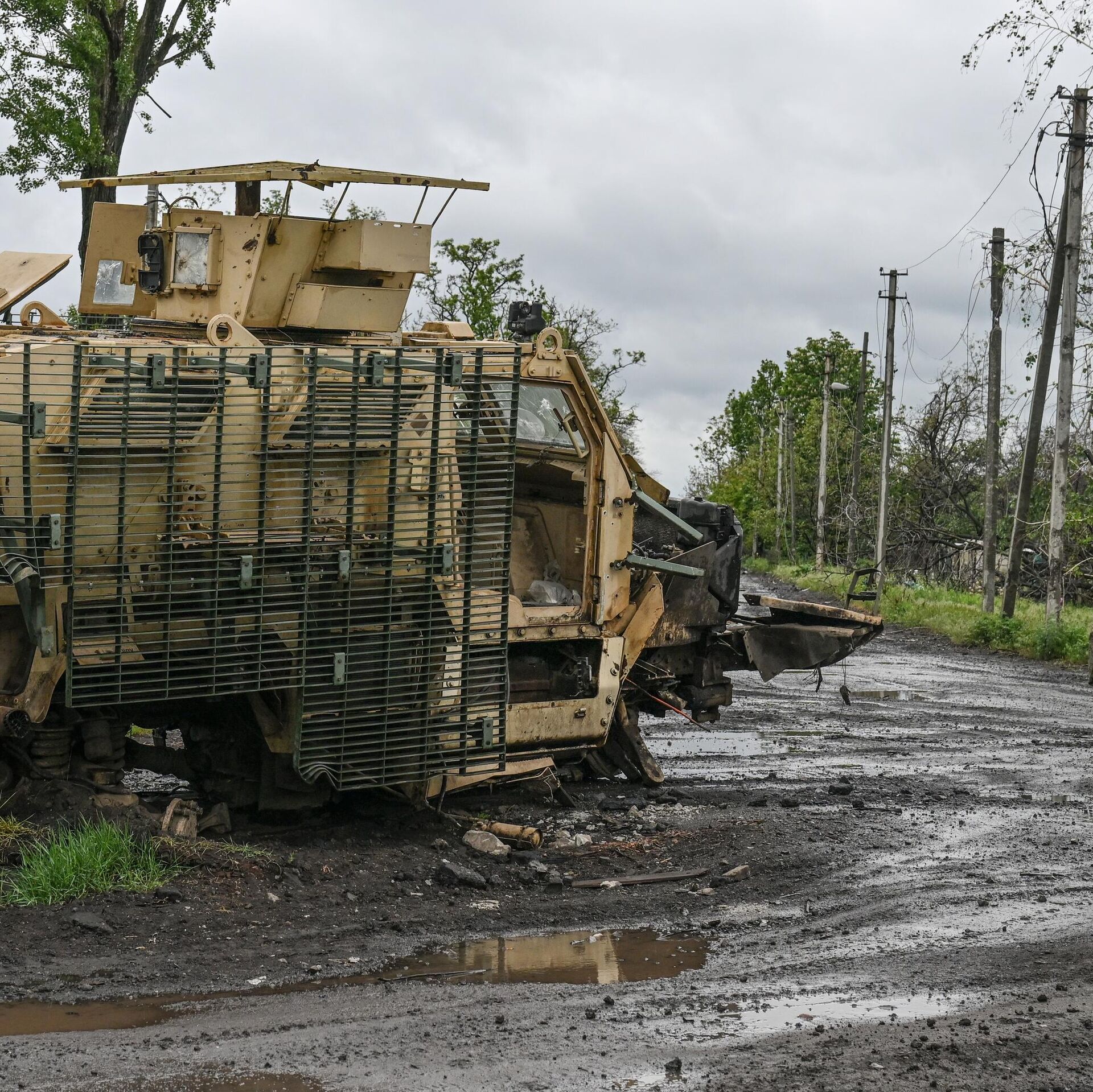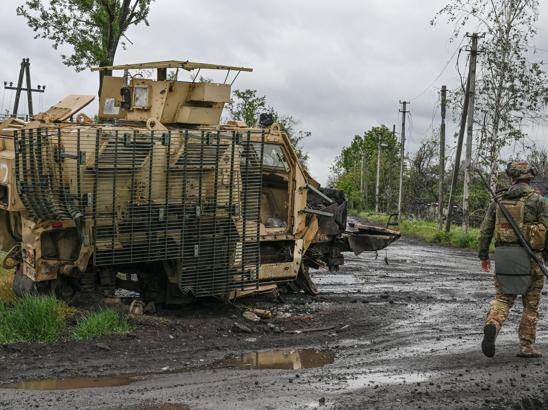 ناقلة جنود مدرعة من طراز MaxxPro تابعة للقوات المسلحة الأوكرانية في أحد شوارع مدينة سيليدوفو (اتجاه كراسنوارميسكوي في المنطقة العسكرية الشمالية).