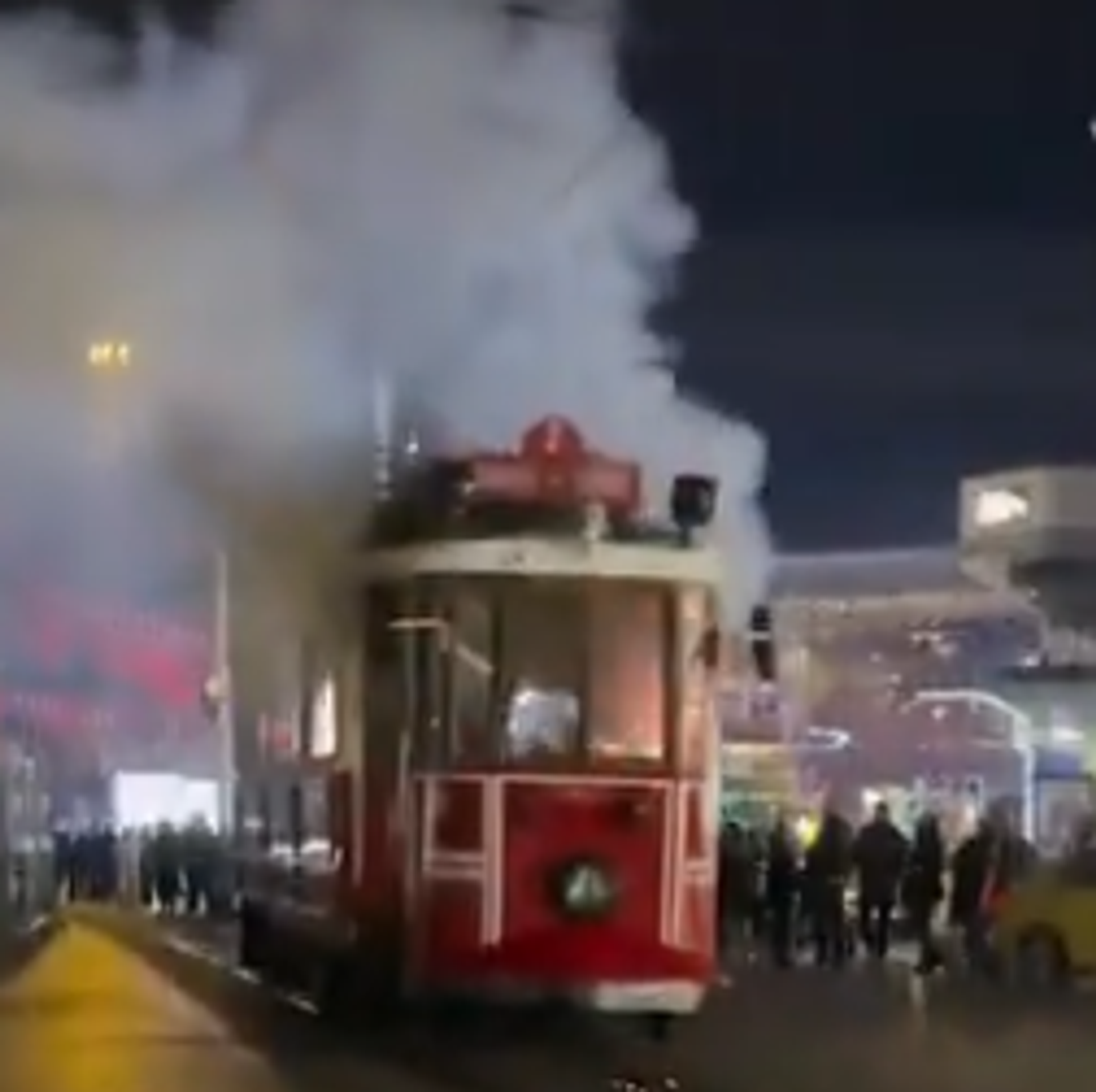 نجا ركاب الترام الأحمر الشهير الذي يجوب شارع الاستقلال في ساحة تقسيم في مدينة إسطنبول التركية، من حريق مفاجئ اندلع داخل العربة مساء أمس الأحد.