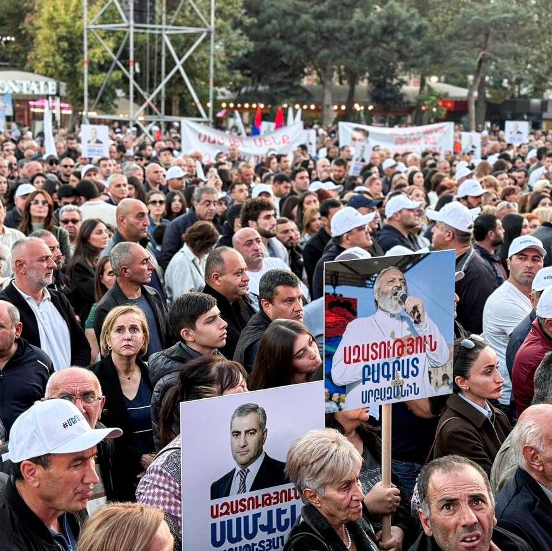 وقال ألكسان ألكسانيان، ممثل حركة "على طريقتنا" التي يقودها كارابتيان، في كلمته الافتتاحية: "لقد تجمع هنا أناس لم يستسلموا للوضع الراهن. نطالب بالإفراج عن السجناء السياسيين، وعن قادتنا، وعن سامفيل كارابتيان".