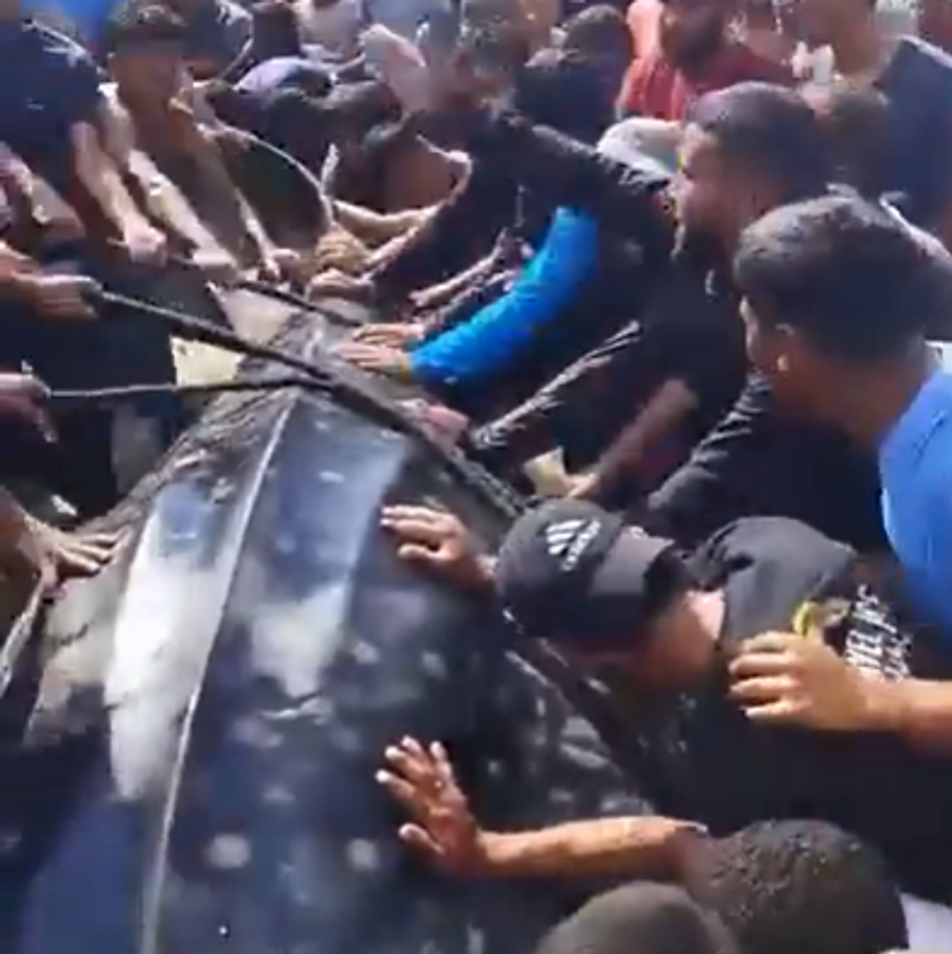 وتجمع المئات من أهالي المدينة حول السمكة العملاقة التي وصفها بعضهم بـ"الحوت"، معتبرين إياها رزقا من الله في ظل الحصار والمعاناة التي يعيشها القطاع، حيث بادر الصيادون إلى توزيع لحمها على الأهالي وسط أجواء من الفرح الشعبي.غير أن الحدث لم يخلُ من الجدل، إذ علّقت وزارة الخارجية الإسرائيلية على الصور المتداولة، زاعمة أن "الغزيين مزقوا حوتا جانحا في عمل قاس لا حدود له"، في محاولة لتصوير الفلسطينيين على أنهم "منتهكون للبيئة".وقال الصحفي الإيرلندي جيمس توريش: "أنتم من قصف عشرات الآلاف من المدنيين، فلا تتحدثوا عن القسوة"، فيما كتبت المدونة الألمانية سابين: "أنتم الذين تركتم الغزيين يجوعون، ثم تلومونهم على صيد سمكة؟"، مضيفة أن سياسة التجويع "لا تؤثر في المقاومة بل في المدنيين الأبرياء".مشهد بطولي... شاب يغامر بحياته لنجدة سائق سيارة تغرقكلب يتمسك بسياج ليتجنب الانجراف بفعل التيار في المكسيك.. فيديو