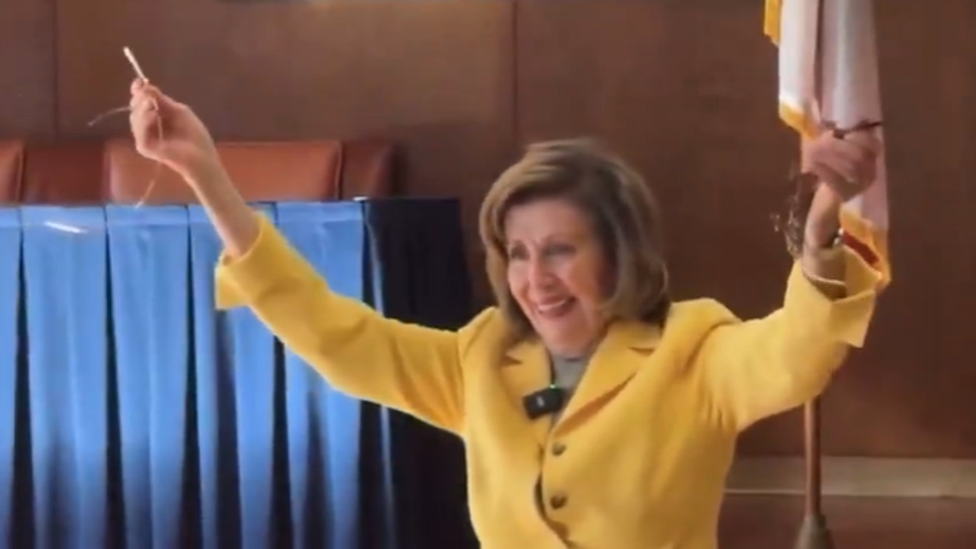 WATCH: 85 year old Nancy Pelosi acts like a child as She Tears a Crown in Half at ‘No Kings’ Protest.