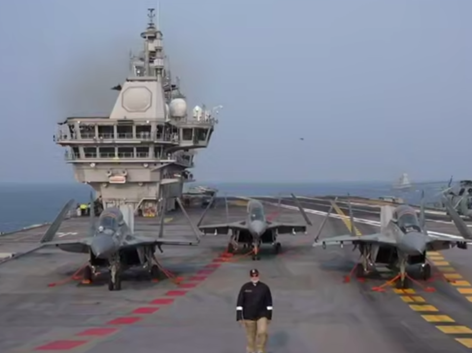 أثناء حديثه لأفراد البحرية على متن السفينة، قال مودي إن التنسيق الاستثنائي بين القوات البحرية الثلاث أجبر باكستان على الاستسلام خلال عملية سيندور.