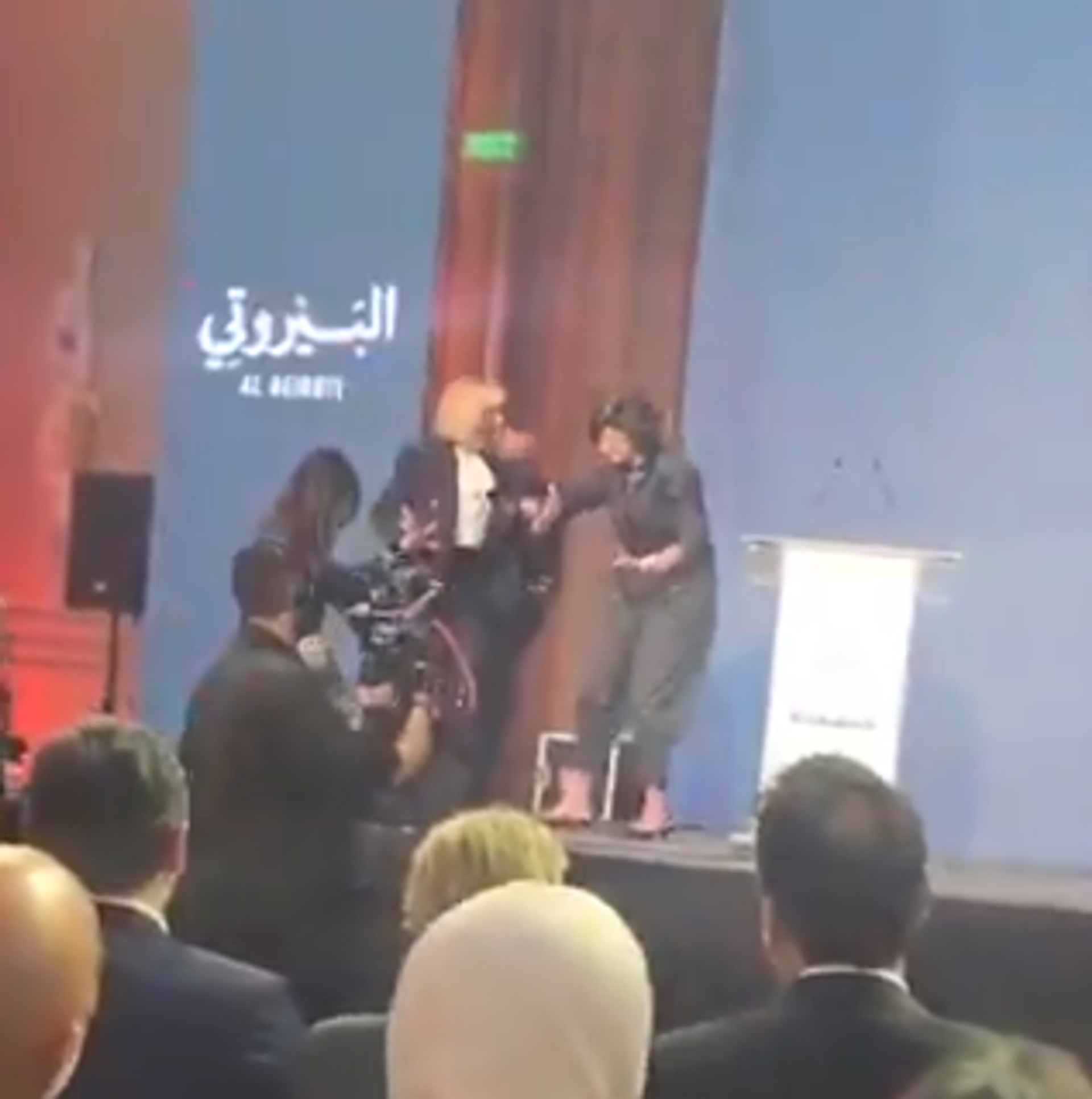 "انكسر الشر"... سيدة لبنان الأولى تتعثر على المسرح... فيديو