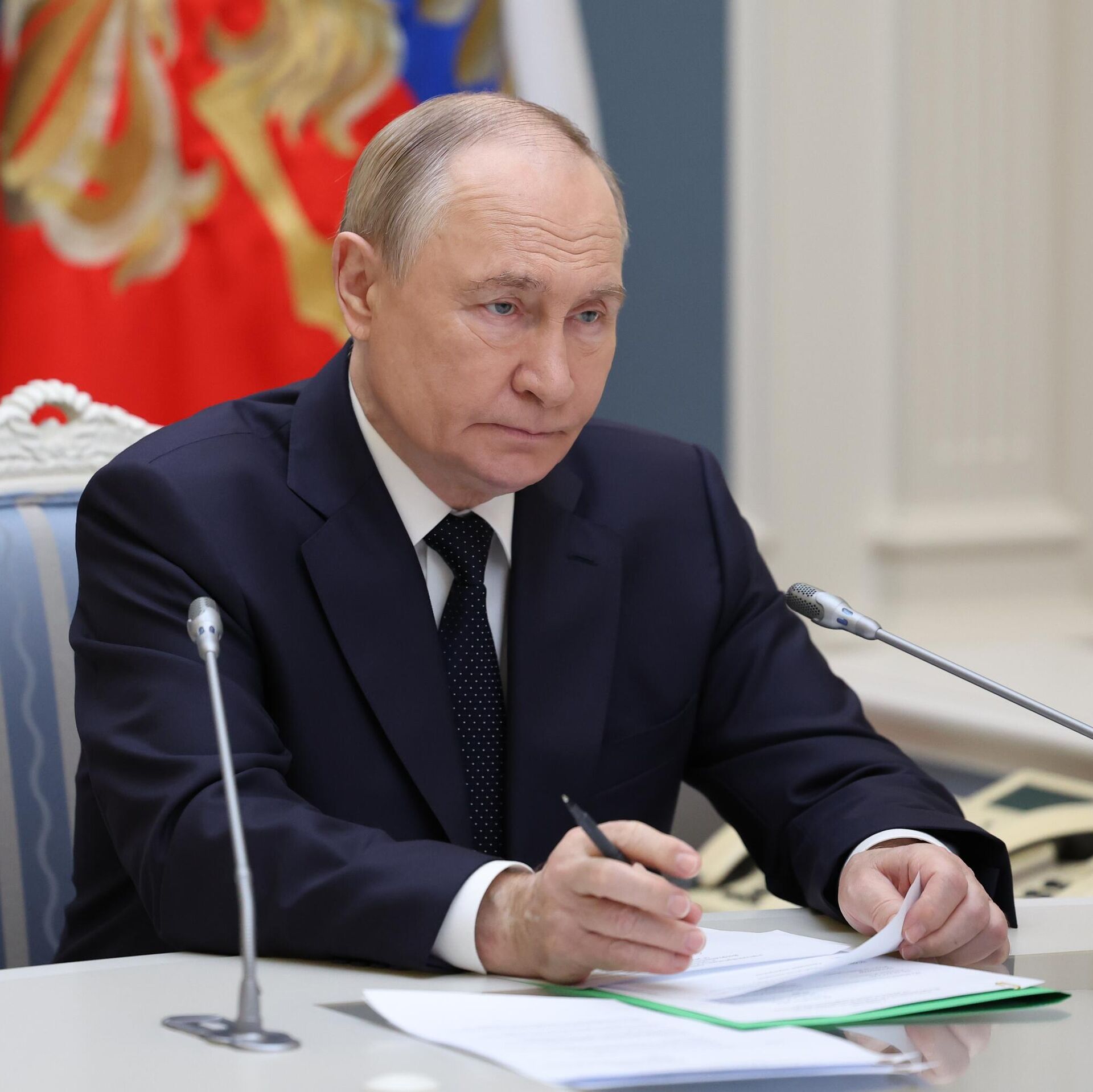 © Sputnik . POOL / الانتقال إلى بنك الصورالرئيس الروسي فلاديمير بوتين