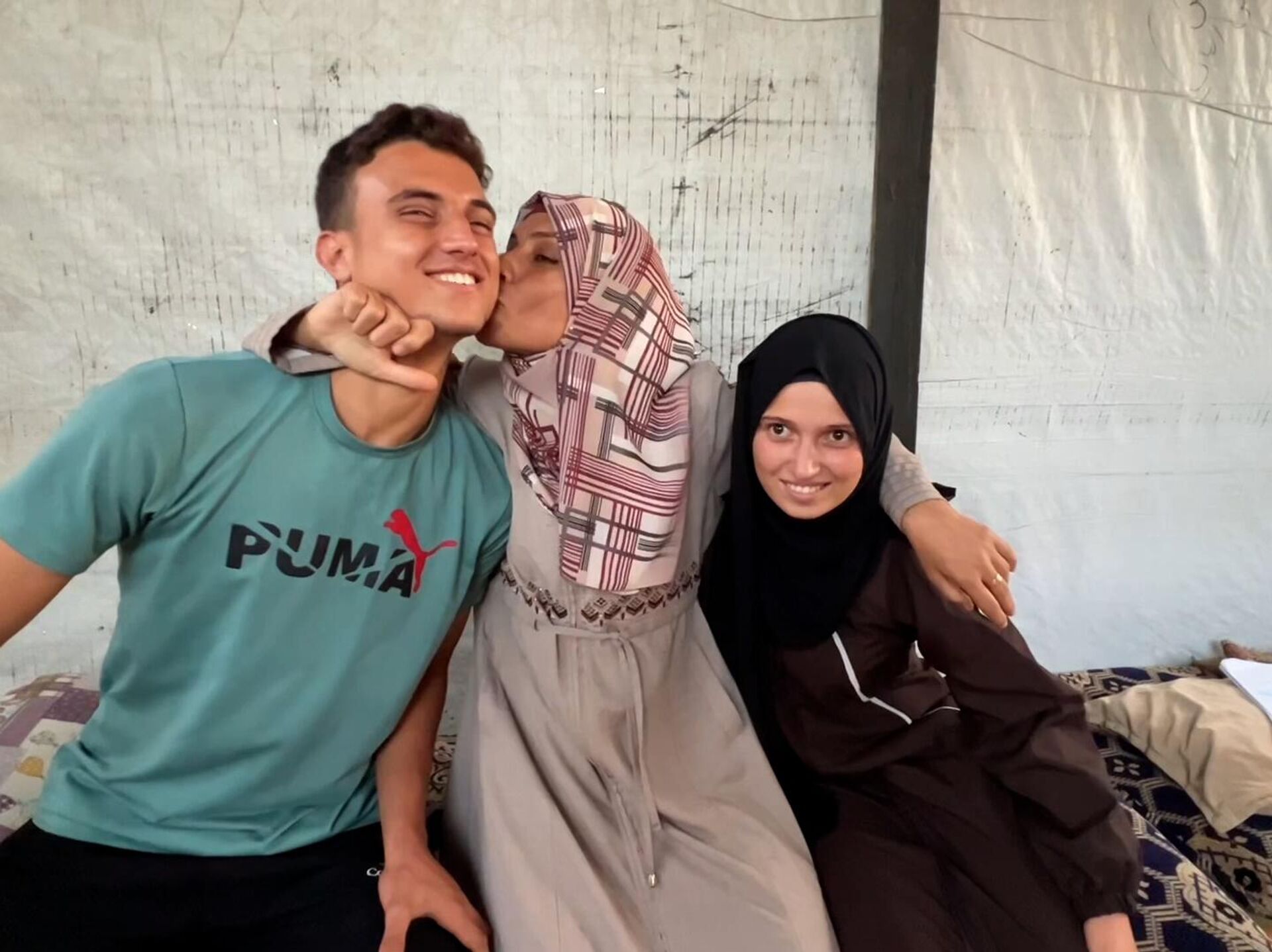 داخل خيمة في مواصي خان يونس جنوبي قطاع غزة، احتفلت عائلة الطبيب ناهض أبو طعيمة بنجاح ولديه محمد وفطوم، وتفاعلت العائلة والجيران مع هذه المناسبة بالتعبير عن الفرح، وارتفعت الزغاريد التي لطالما تمنى النازحون أن يرددوها، للتعبير عن الأمنيات بعودة الحياة بعد انتهاء الحرب ورؤية الأقارب، واستقبلت العائلة الأقارب والجيران الذين جاؤوا للتهنئة بهذه المناسبة.