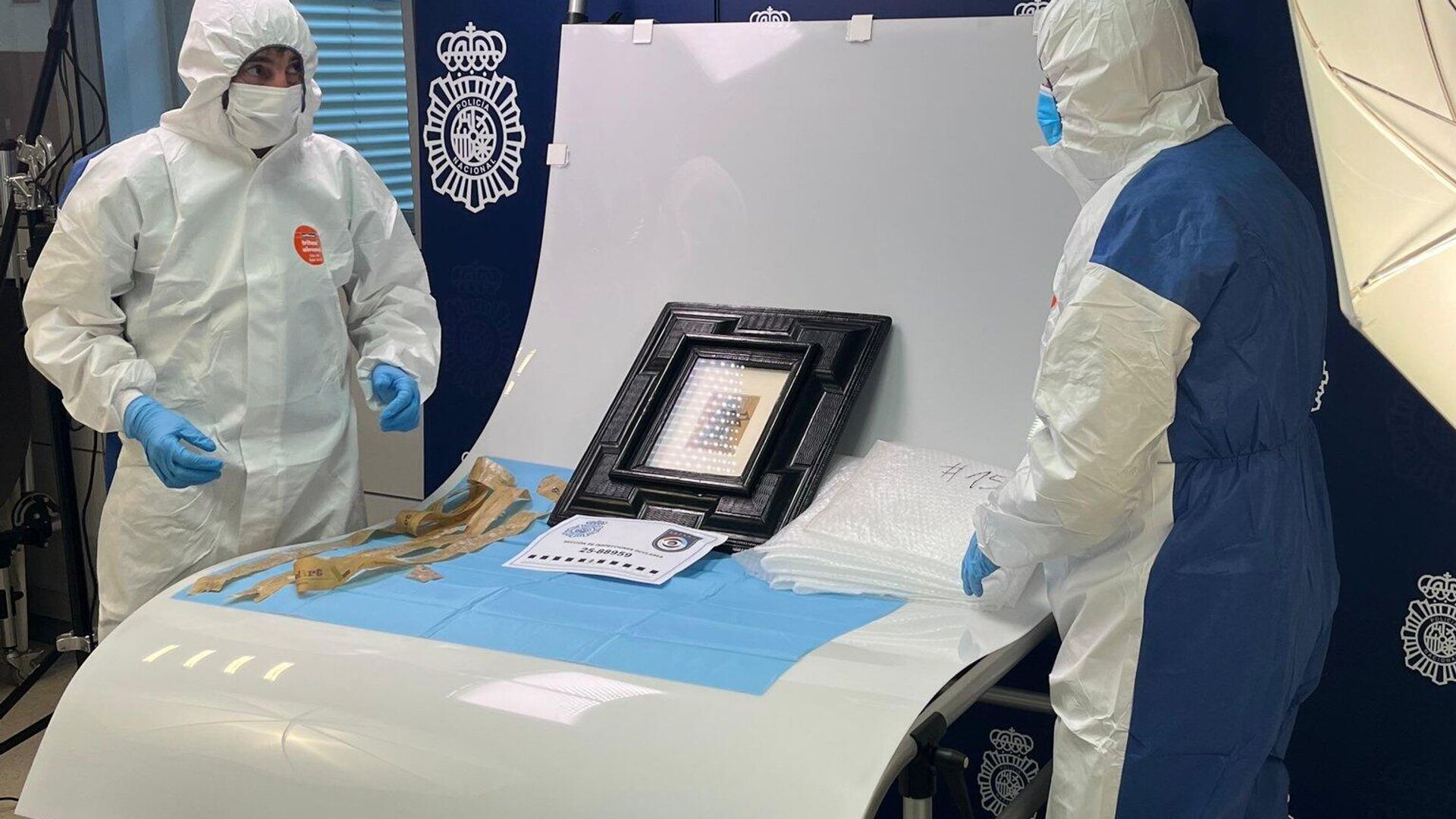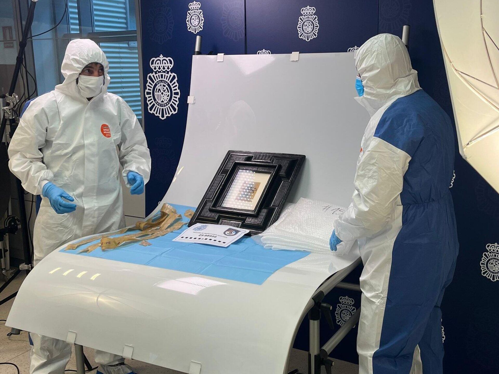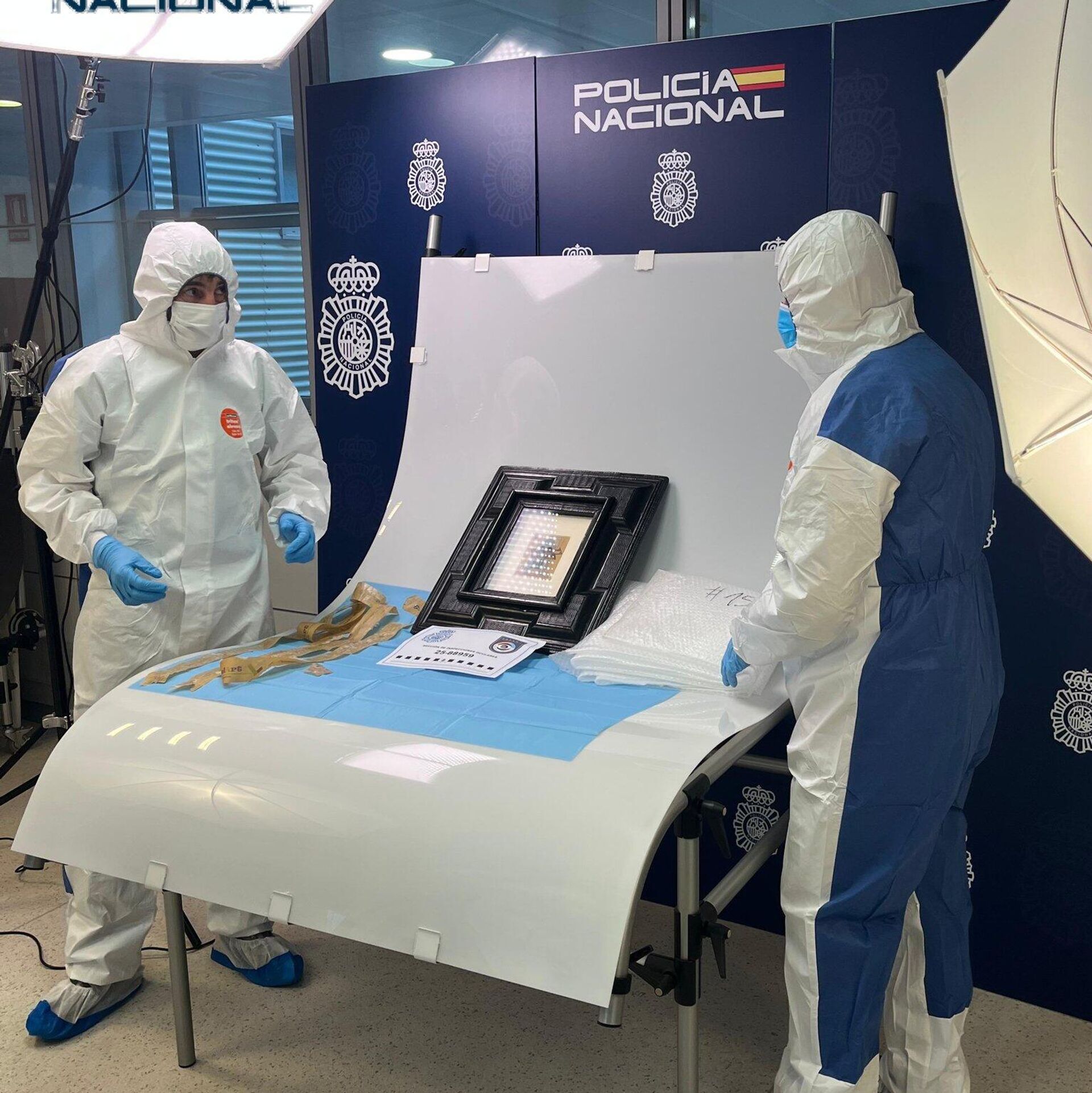 وكانت اللوحة قد تم إدراجها مسبقا على قوائم شرطة الإنتربول العالمية للأعمال الفنية المسروقة، التي تضم نحو 57 ألف قطعة أثرية أخرى، لكنها نشرت اليوم صورتها وبجانبها خبراء الأدلة الجنائية أثناء فحصها بعد العثور عليها.