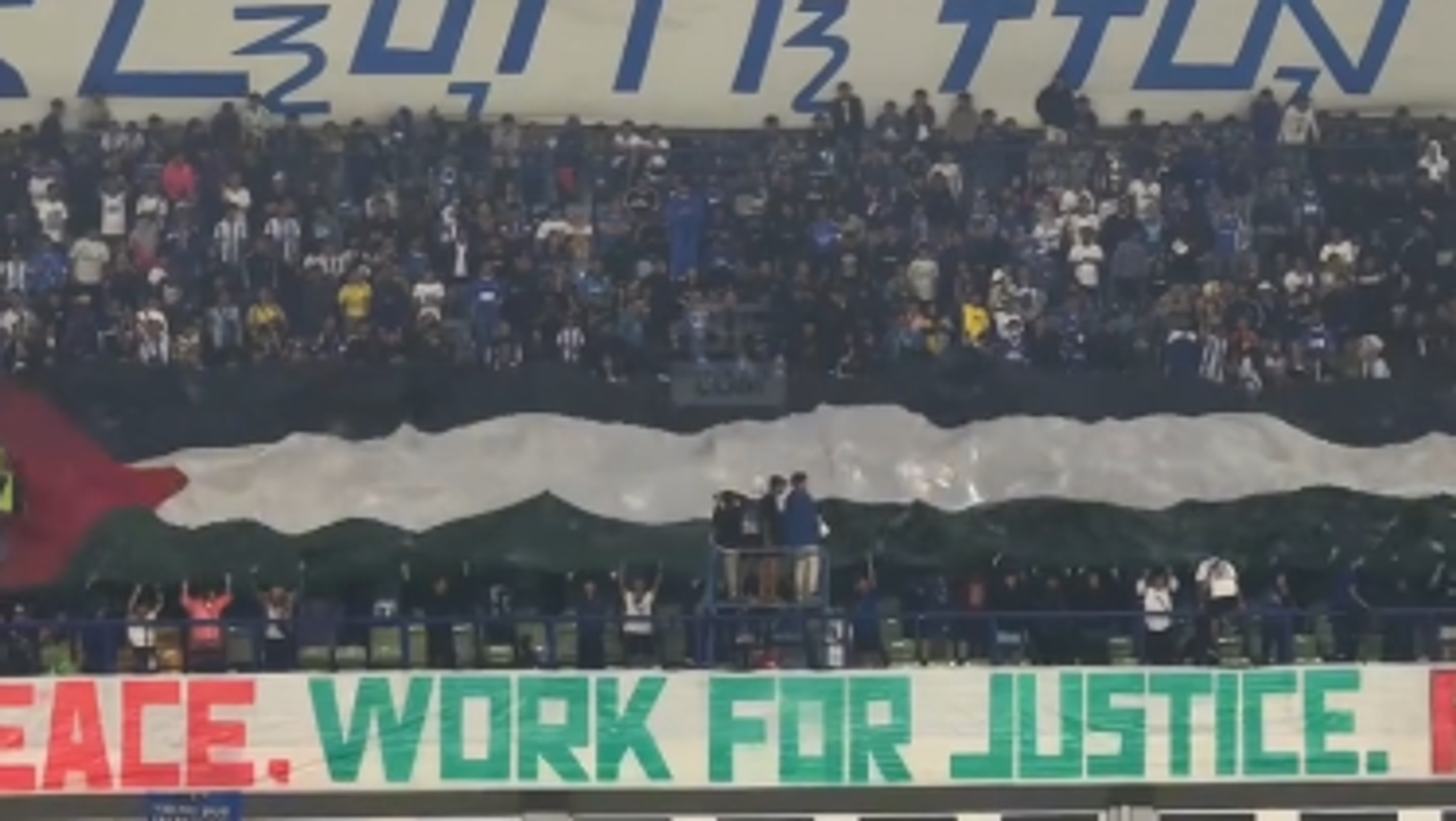 الجمهور الإندونيسي يرفع الأعلام الفلسطينية خلال مباراة... فيديو