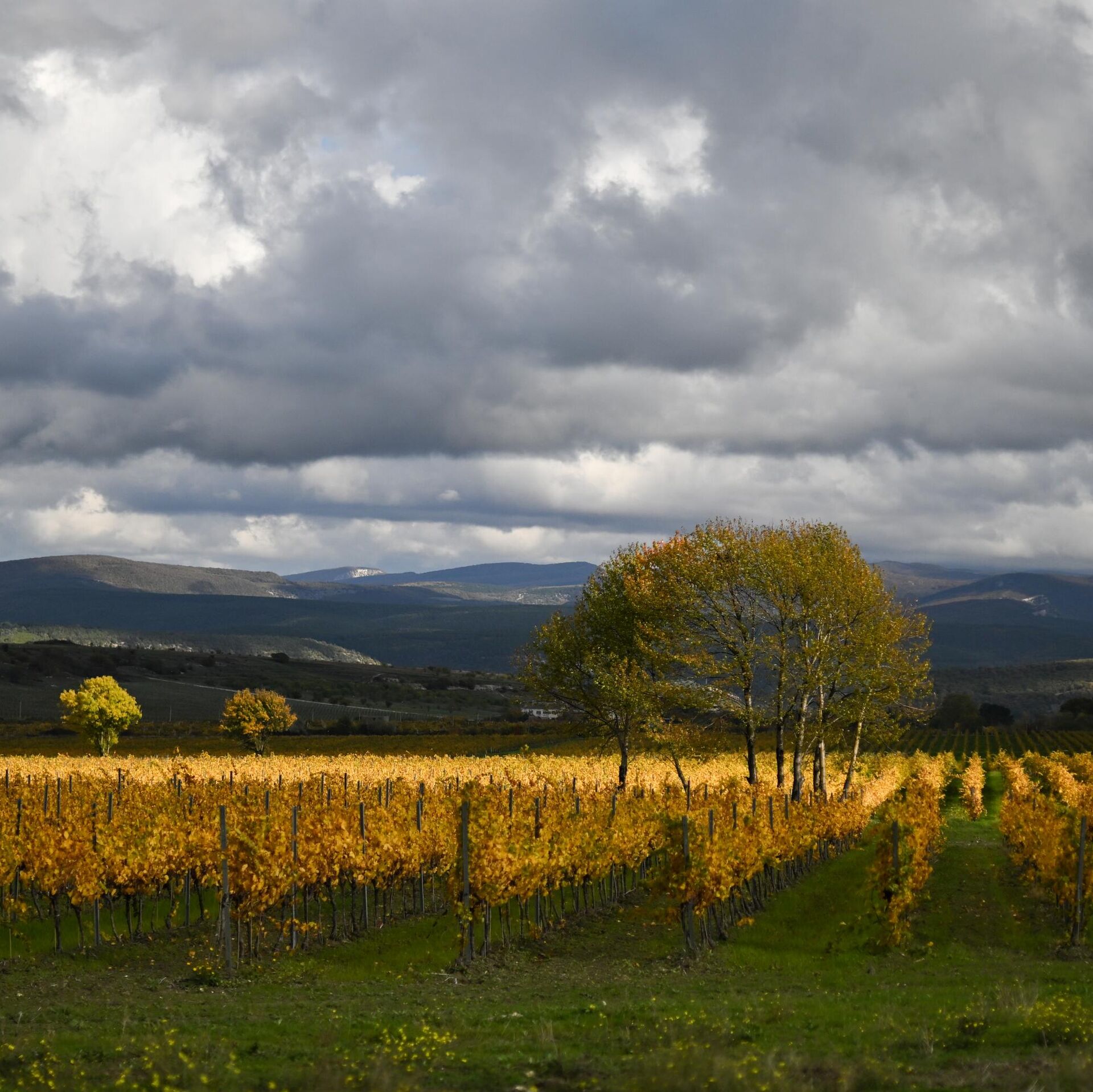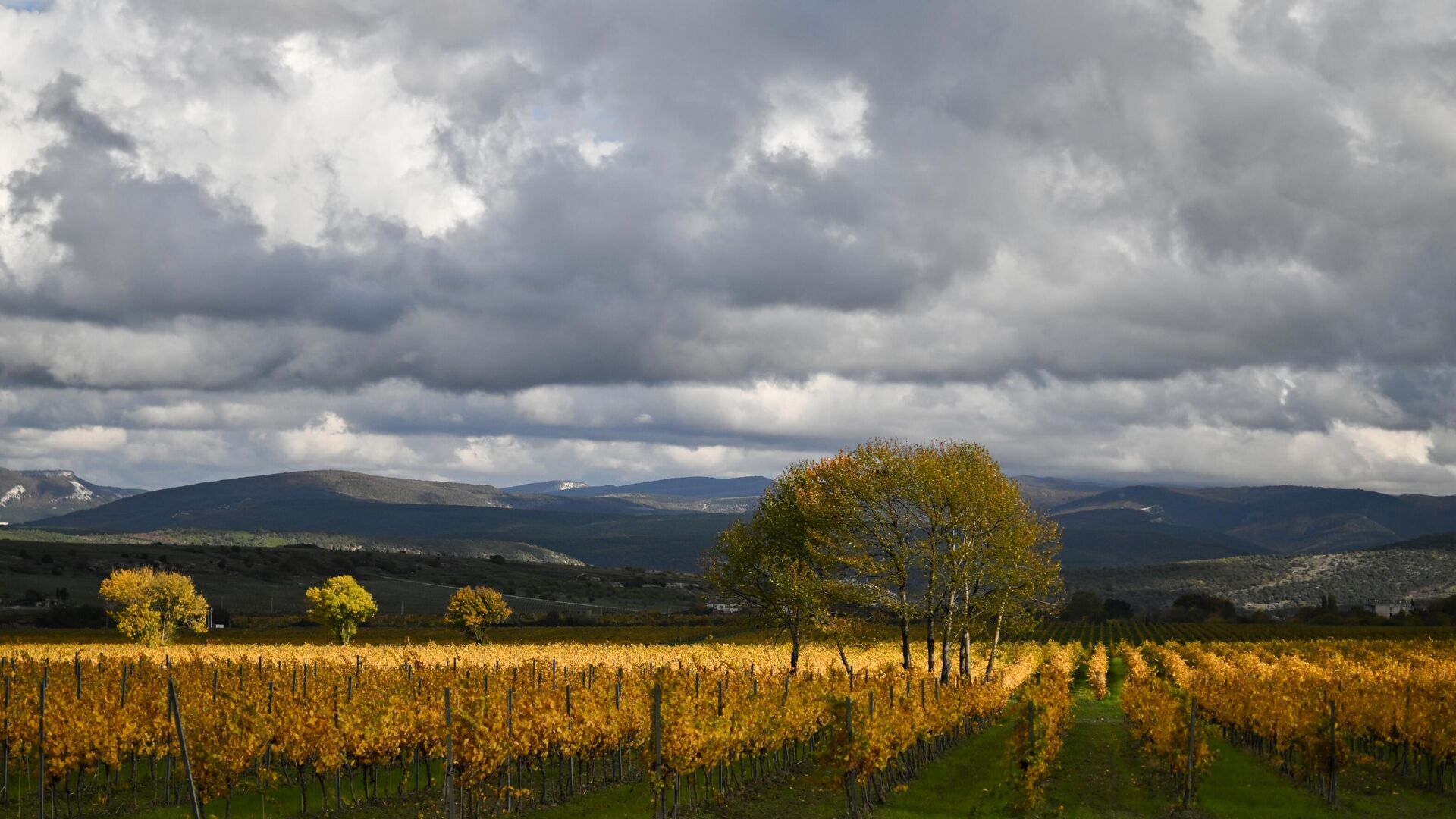 كروم العنب في وادي زولوتايا بالكا في منطقة بالاكلافا في جمهورية القرم الروسية.