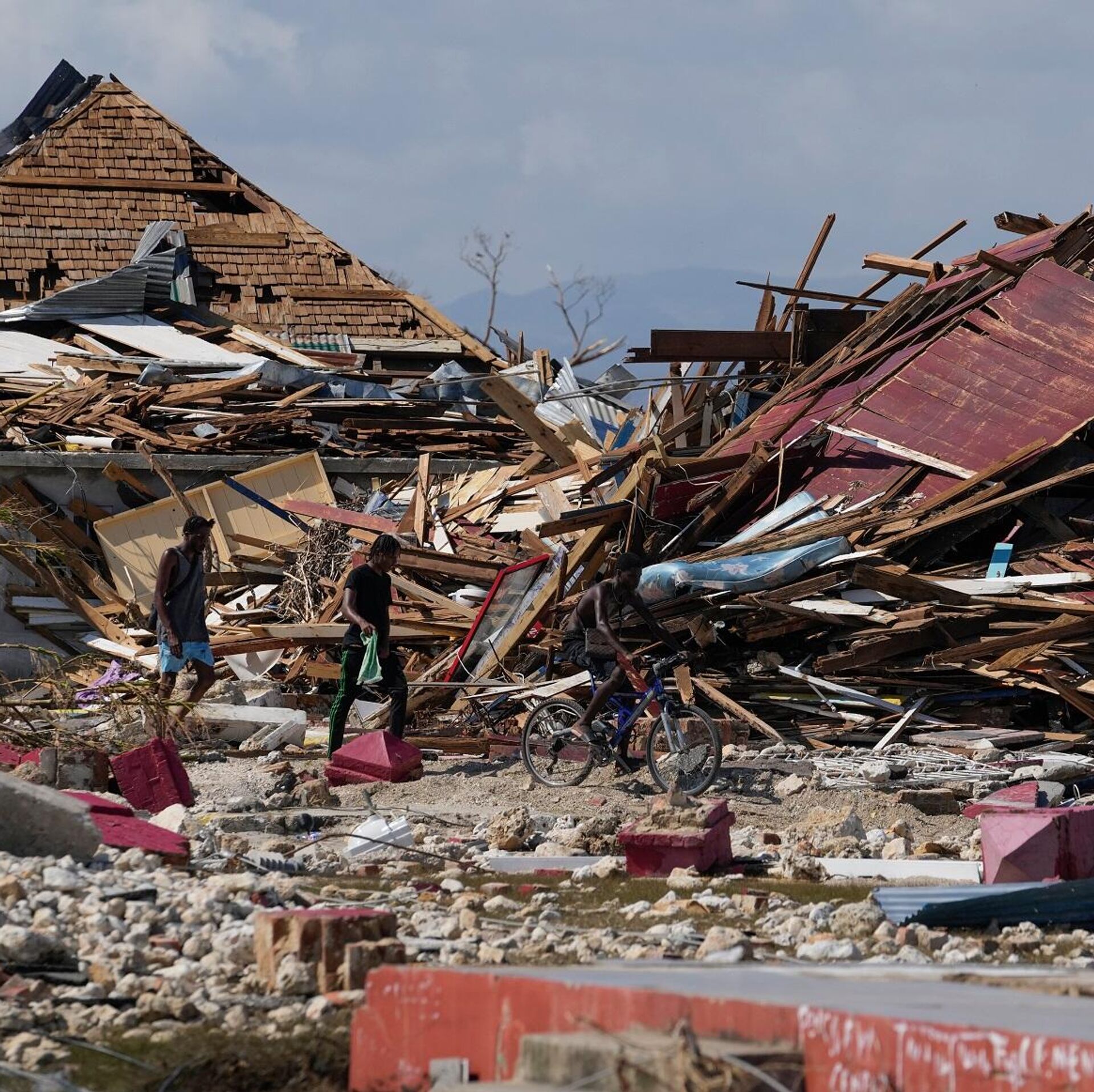 © AP Photo / Matias Delacroixيشق السكان طريقهم عبر أكوام الحطام في أعقاب إعصار ميليسا في بلاك ريفر، جامايكا، 30 أكتوبر/ تشرين الأول 2025