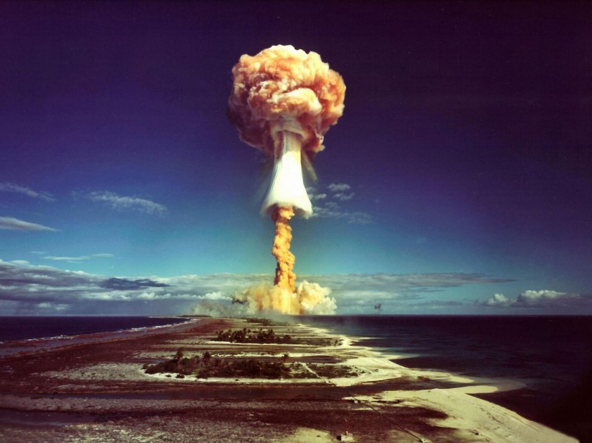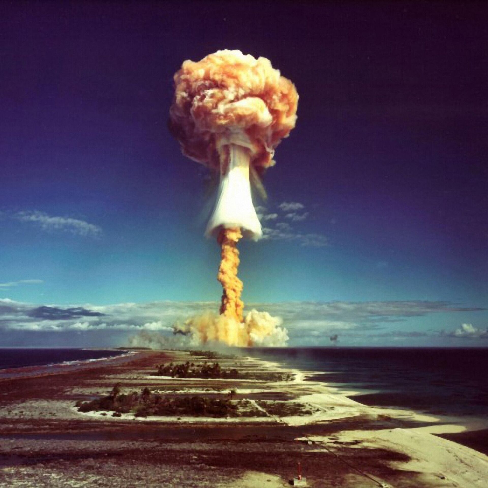 صورة تحمل علامة "0.025 ثانية" للتجربة النووية الأولى (الاختبار النووي الأول ولم يستمر سوى جزء من ثانية وهو ما يفسر علامة الـ 0.025 ثانية)، والتي أطلق عليها اسم "ترينيتي"، والتي أجراها مختبر "لوس ألاموس" الوطني في ألاموجوردو، نيو مكسيكو عام 1945.