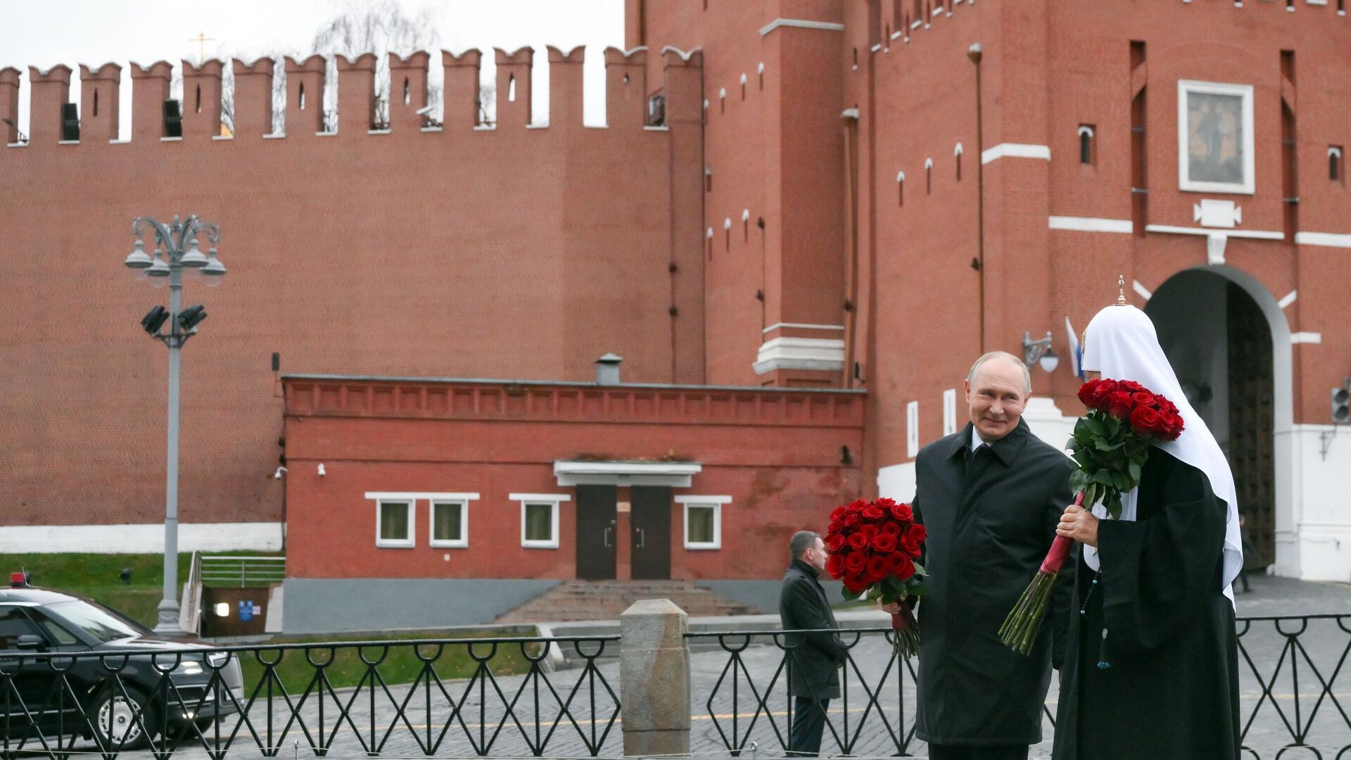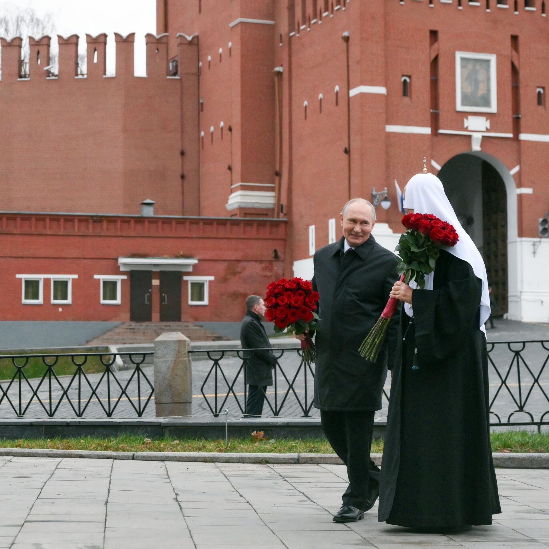 وضع الرئيس الروسي فلاديمير بوتين، اليوم الثلاثاء، الزهور على النصب التذكارية لكوزما مينين ودميتري بوزارسكي في الساحة الحمراء في العاصمة موسكو، إحياء للاحتفالية التقليدية في يوم الوحدة الوطنية الروسية.