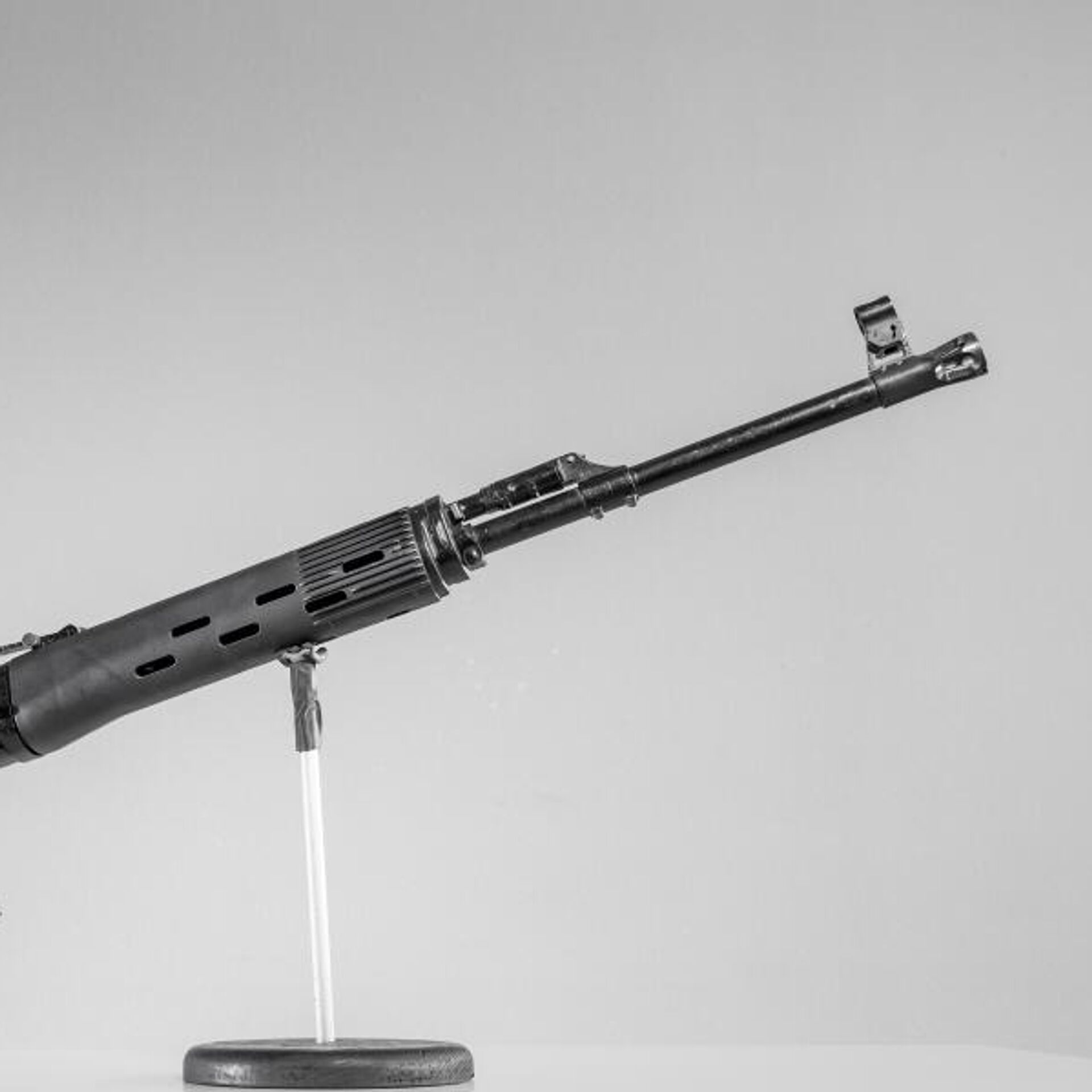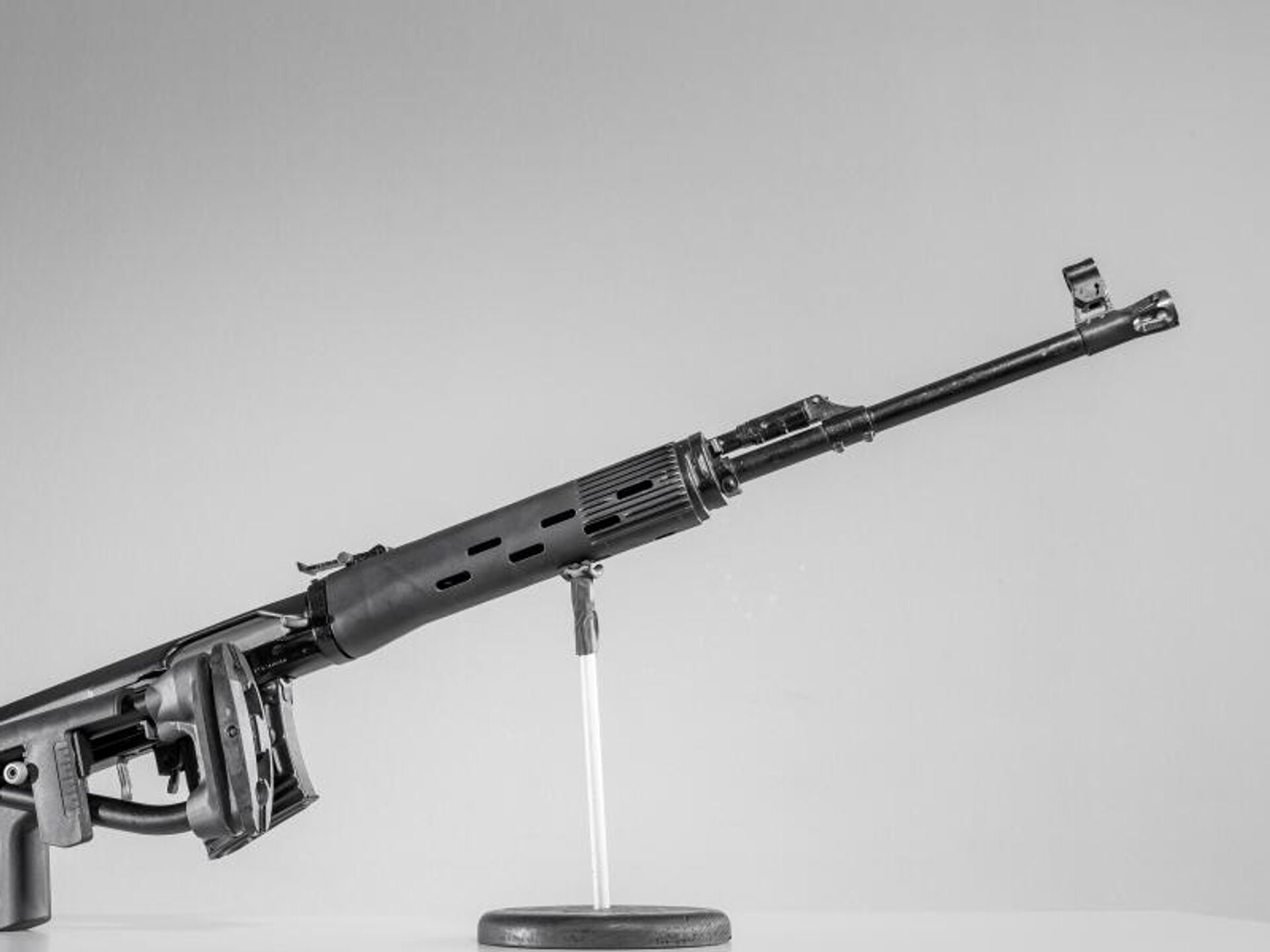 ويطلق على هذه البندقية الروسية اسم "دراغنوف" وهي مزودة بأخمص قابل للطي يساعد في زيادة قدرة