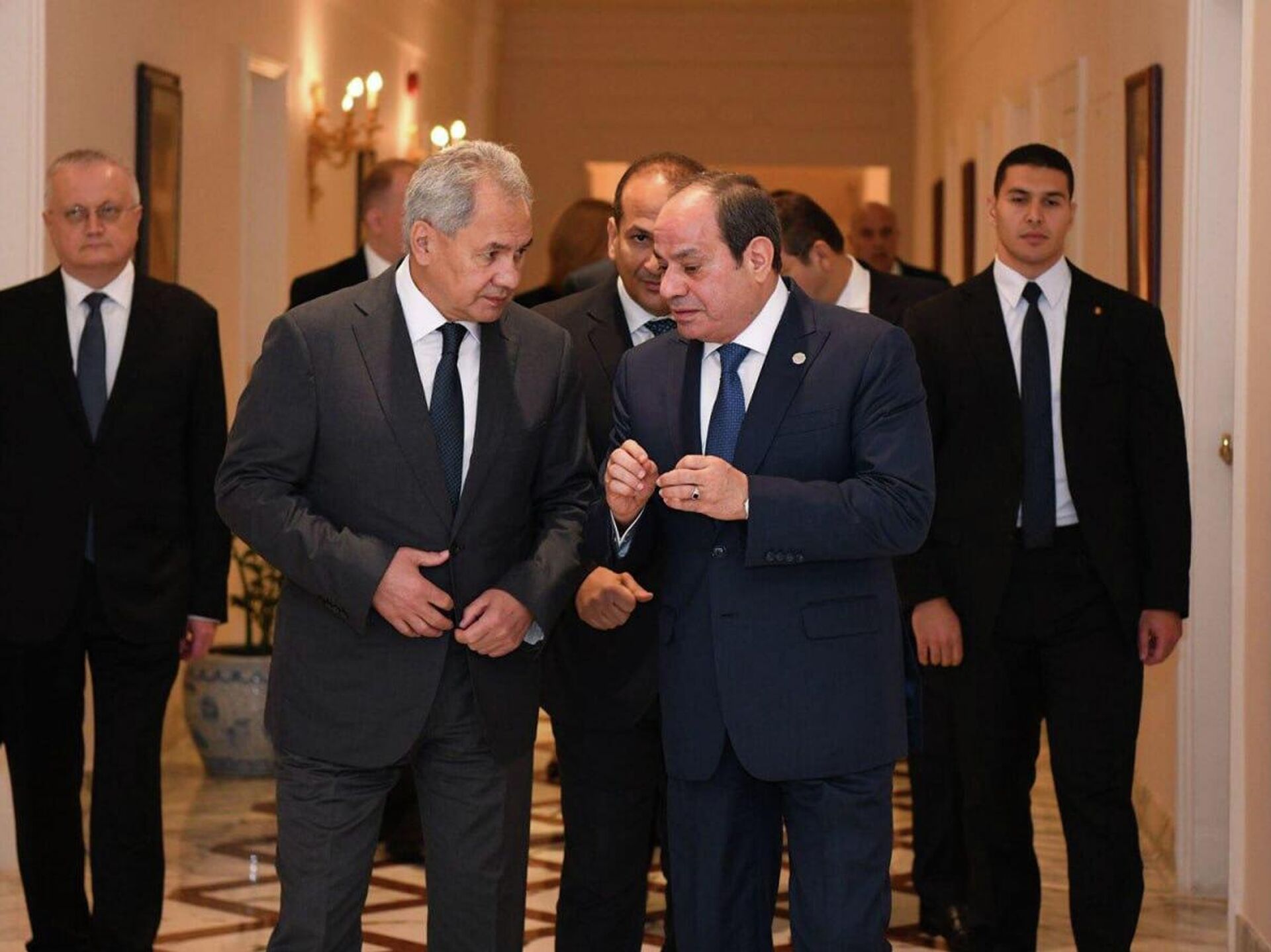وفي وقت سابق من اليوم، بحث الرئيس المصري، عبد الفتاح السيسي، مع سكرتير مجلس الأمن الروسي، سيرغي شويغو، سبل تعزيز العلاقات الثنائية بين مصر وروسيا، واستعرضا فرص تطويرها في مختلف المجالات، لا سيما السياسية والتجارية والاستثمارية.