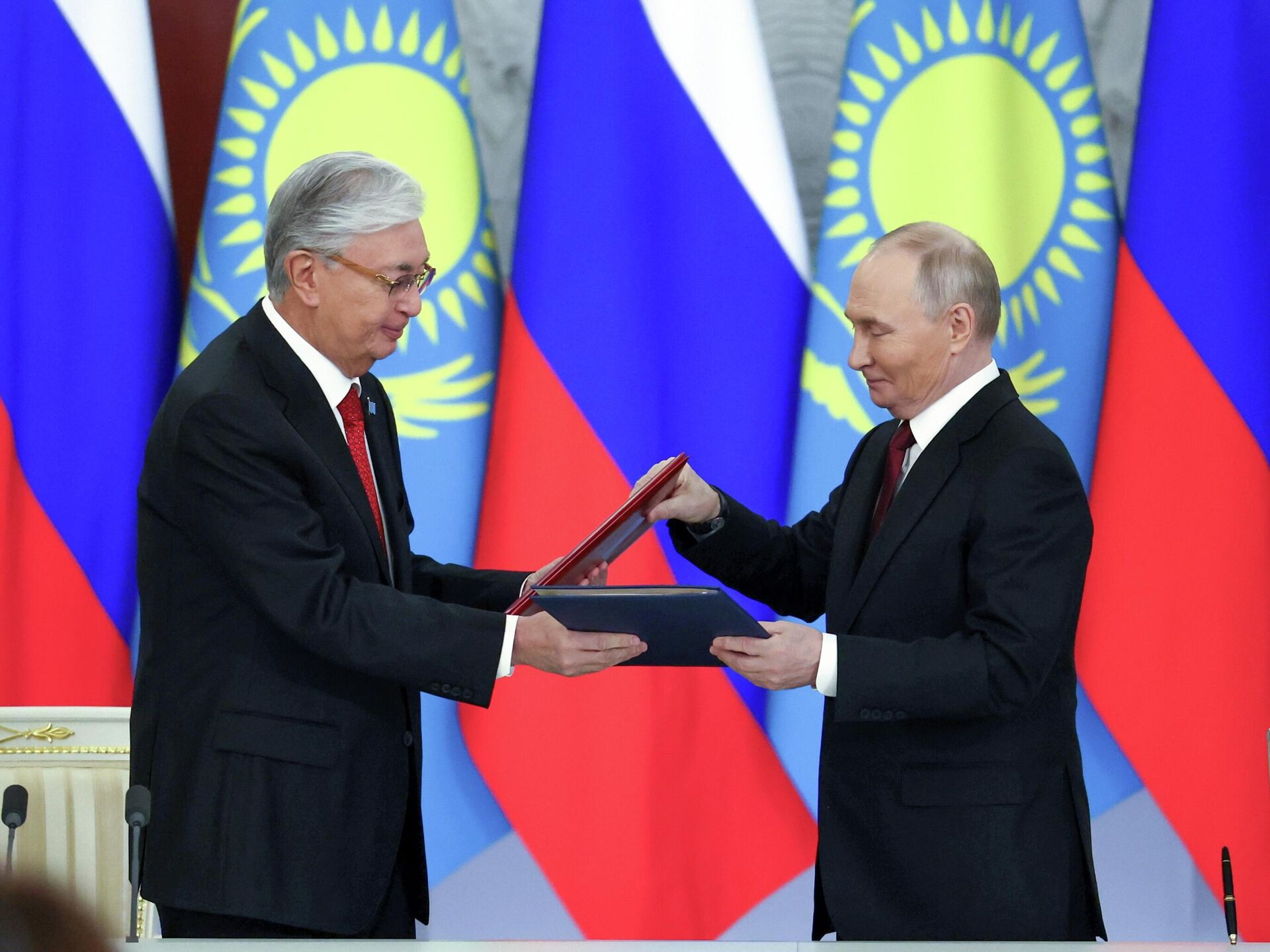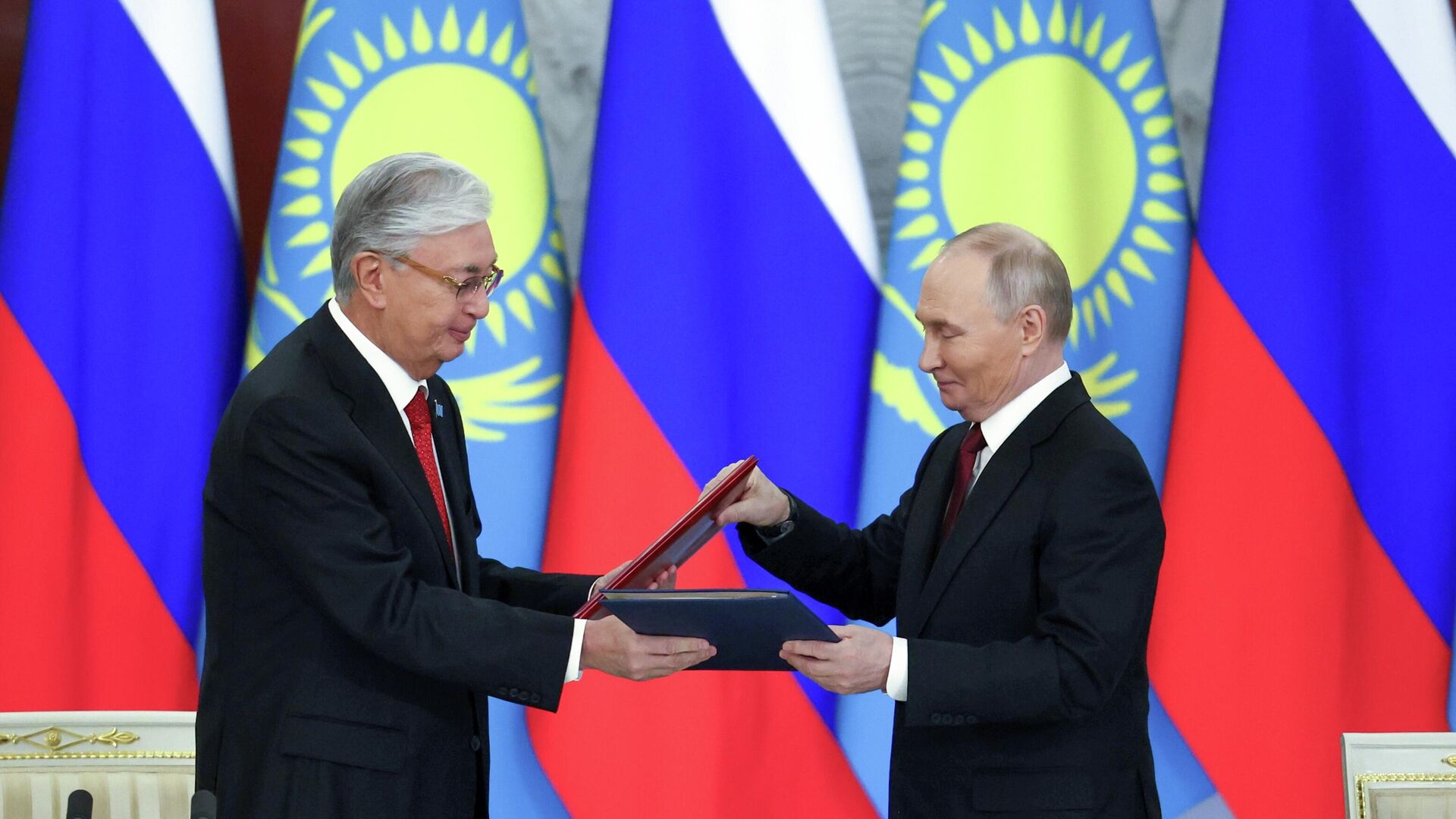 14:37 GMT 12.11.2025 (تم التحديث: 14:52 GMT 12.11.2025) وقّع الرئيس الروسي فلاديمير بوتين، والرئيس الكازاخستاني قاسم جومارت توكايف، اليوم الأربعاء، إعلانا بشأن انتقال العلاقات الكازاخستانية الروسية إلى مستوى الشراكة الاستراتيجية الشاملة والتحالف.