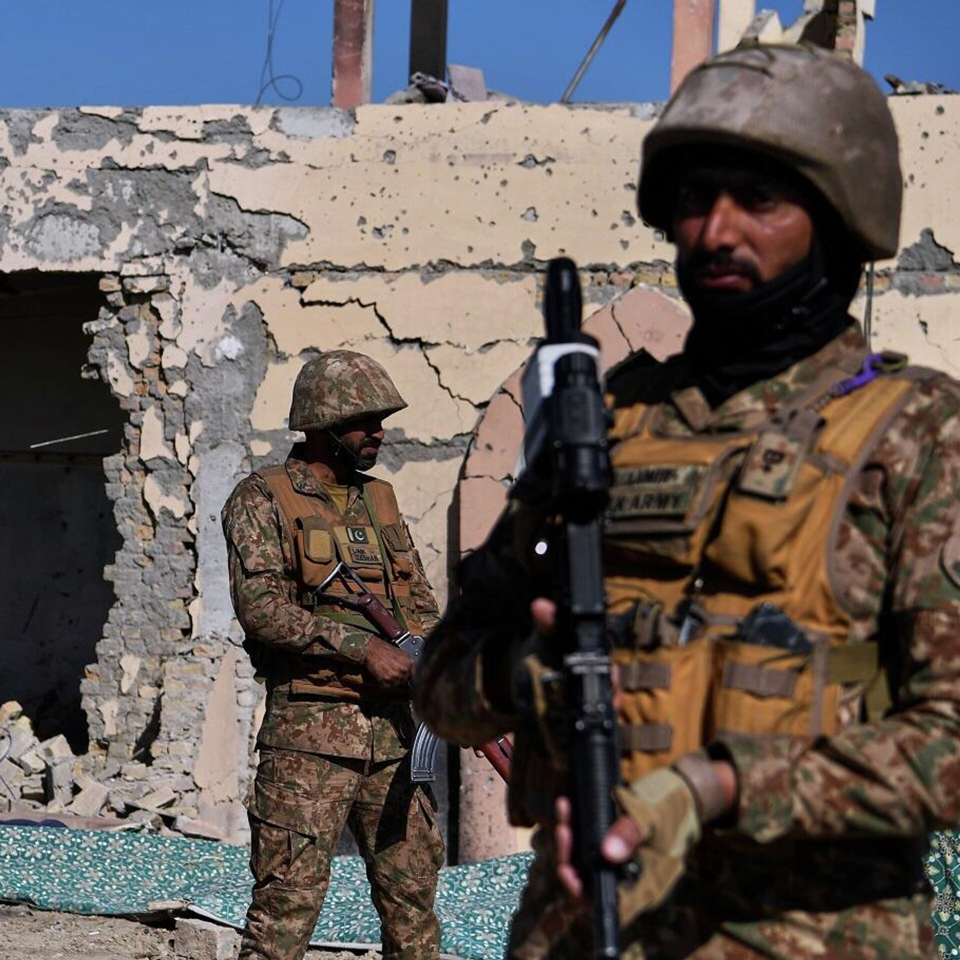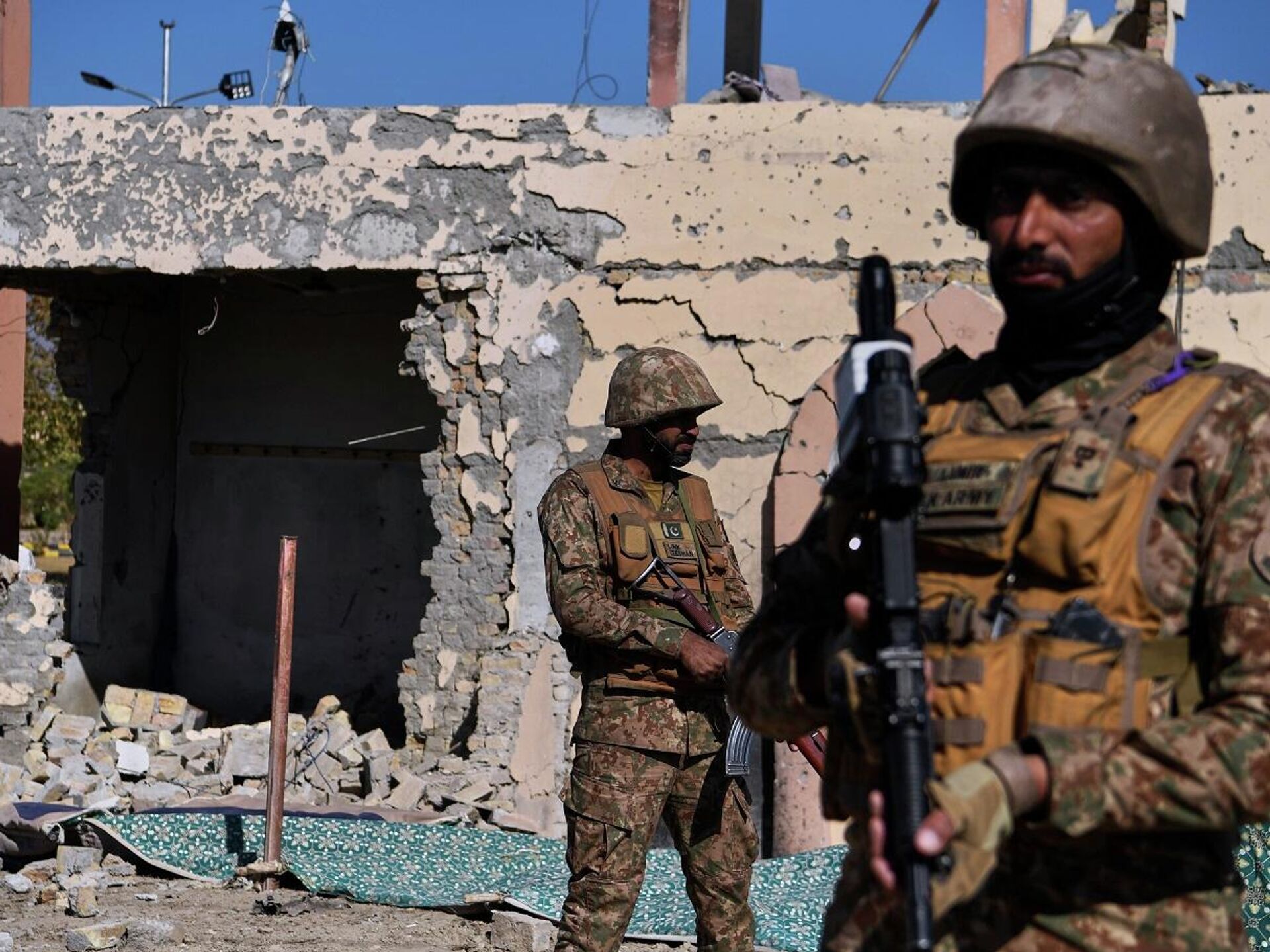 © AP Photo / Ahsan Shahzadجنود يحيطون بمبنى متضرر في كلية عسكرية بهجوم مسلحين في وانا، جنوب وزيرستان شمال غرب باكستان، 13 نوفمبر/ تشرين الثاني 2025