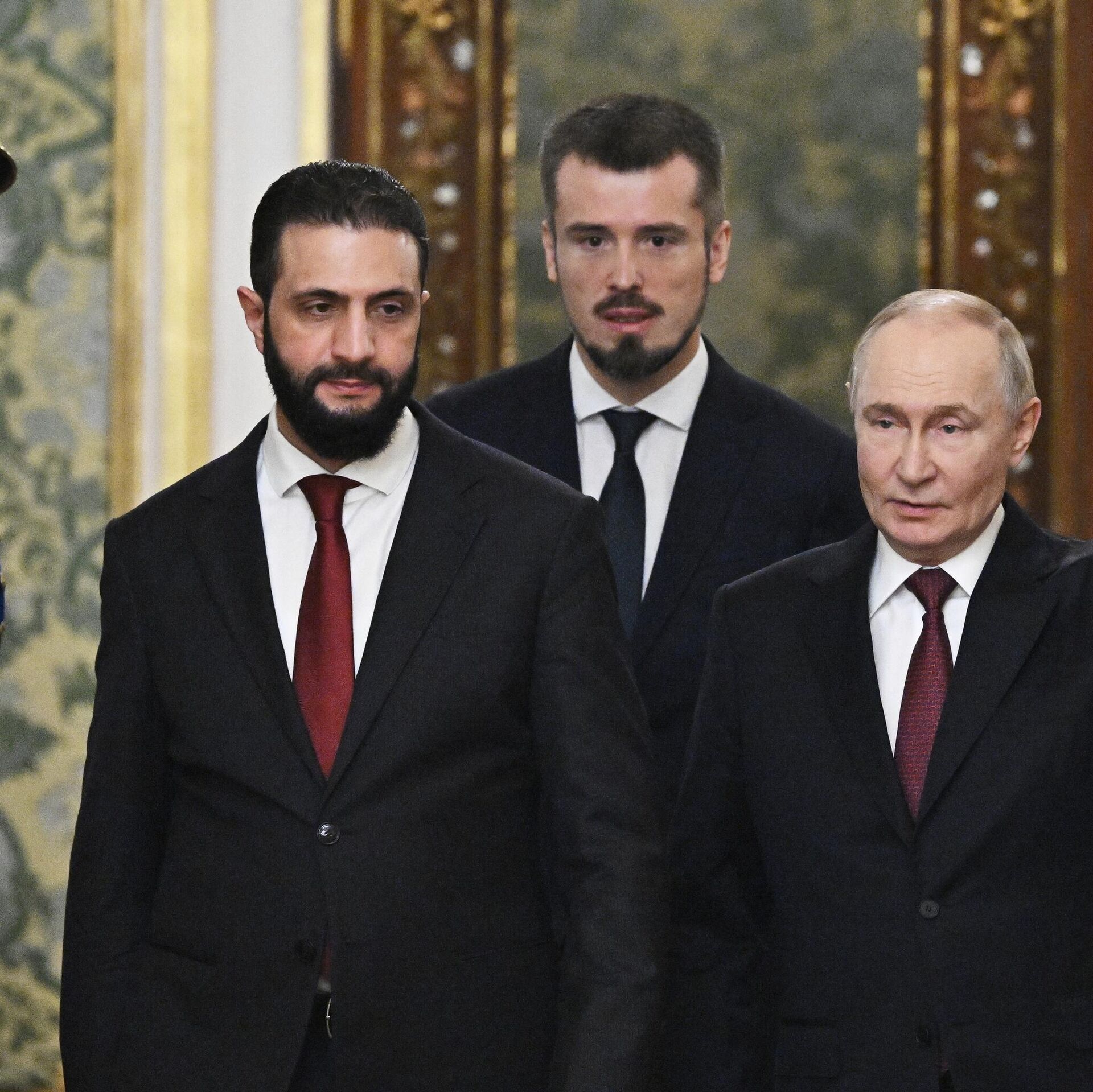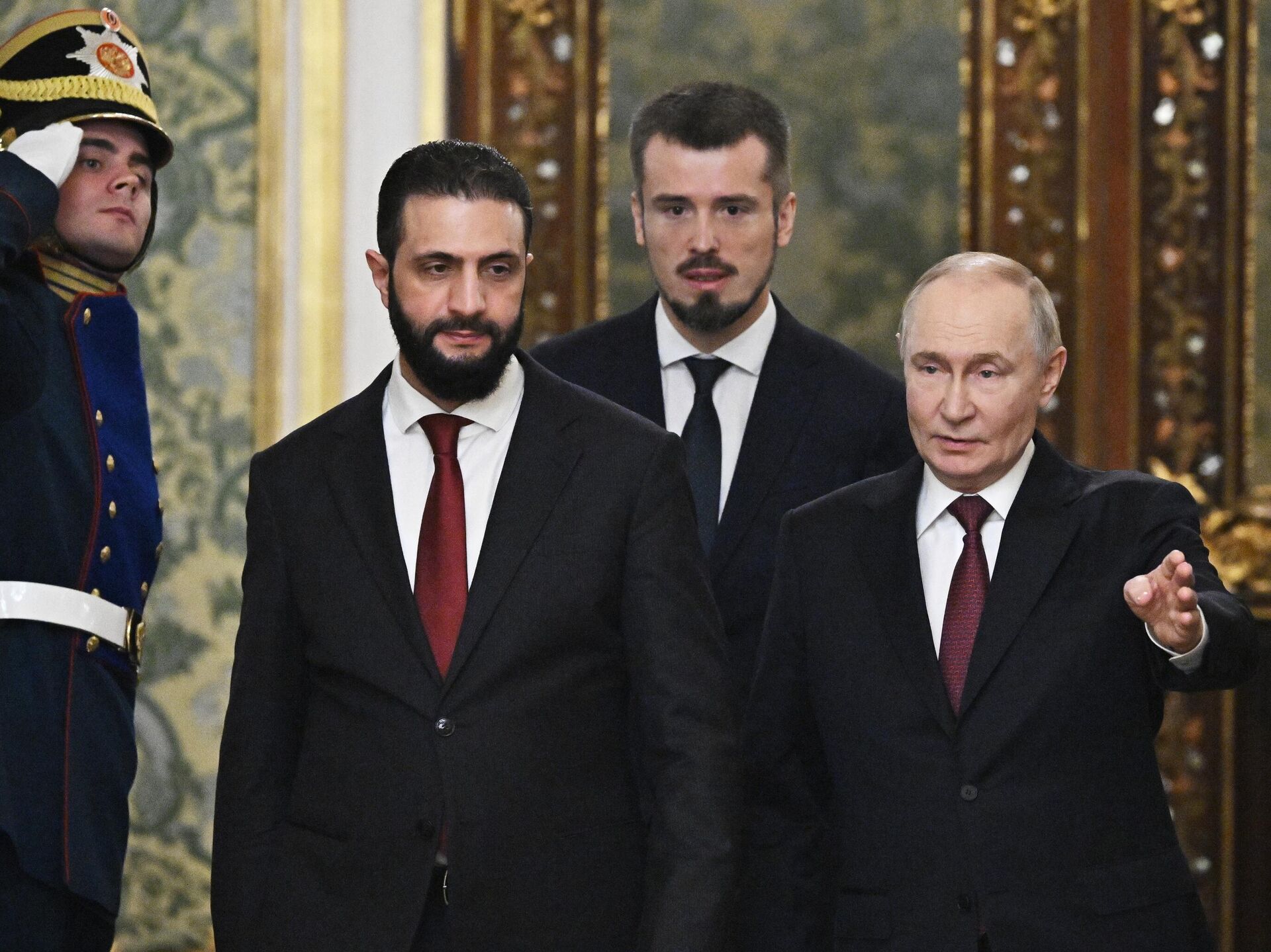 © Sputnik . Sergey Bobylev / الانتقال إلى بنك الصور الرئيس الروسي فلاديمير بوتين والرئيس السوري أحمد الشرع خلال اجتماع في موسكو.