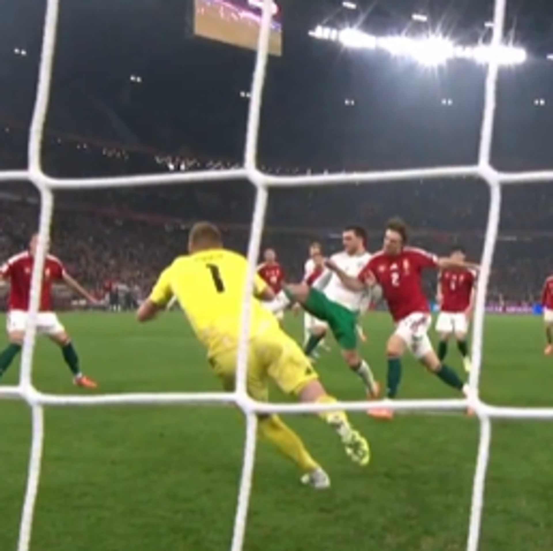 وشهدت العاصمة المجرية بودابست، بداية قوية لأصحاب الأرض، حيث تقدم دانييل لوكاش بهدف مبكر في الدقيقة الثالثة، قبل أن يعادل باروت النتيجة من ركلة جزاء في الدقيقة 15. وأعاد بارناباس فارجا التقدم للمجر بتسجيله الهدف الثاني في الدقيقة 37.