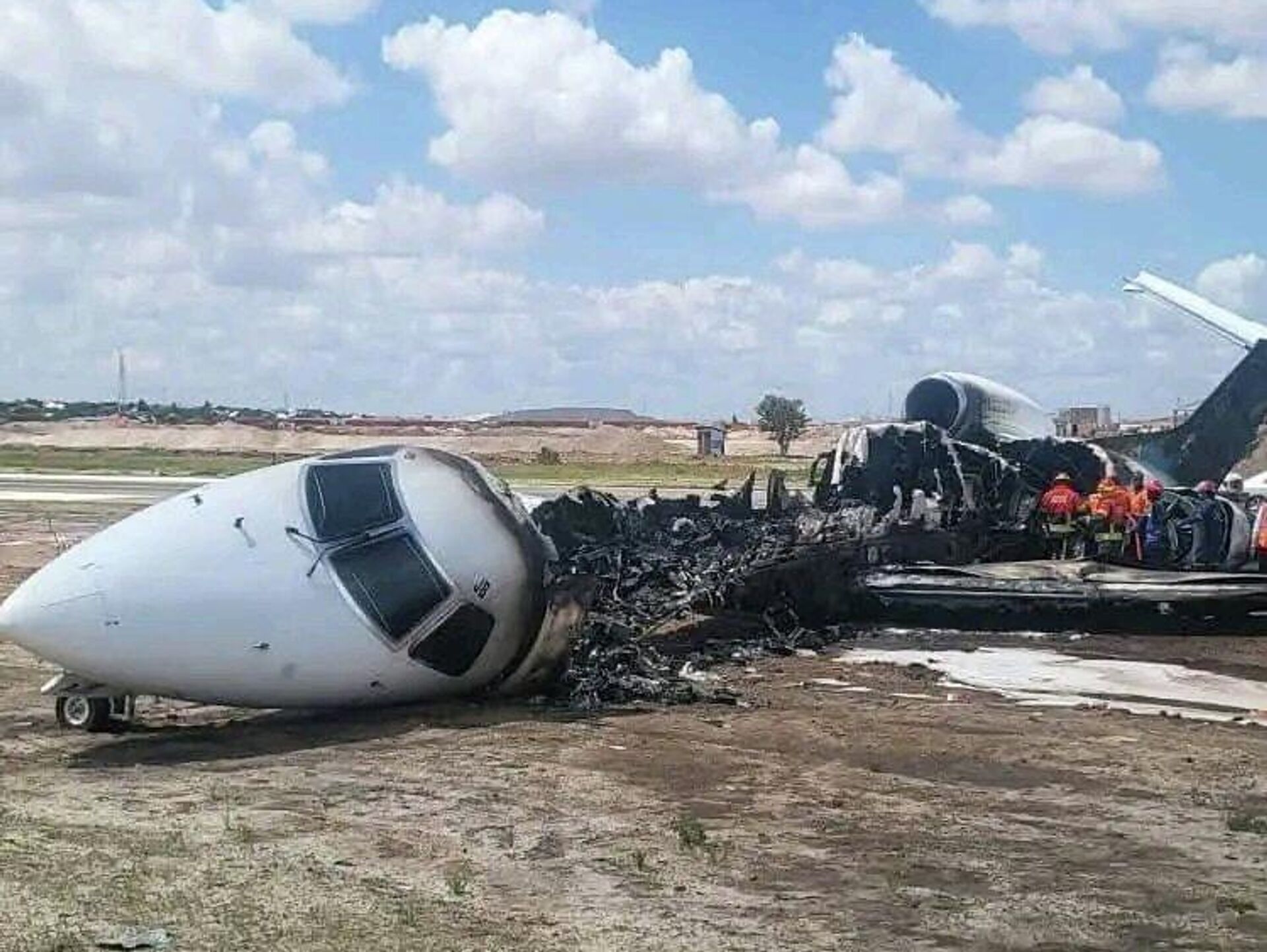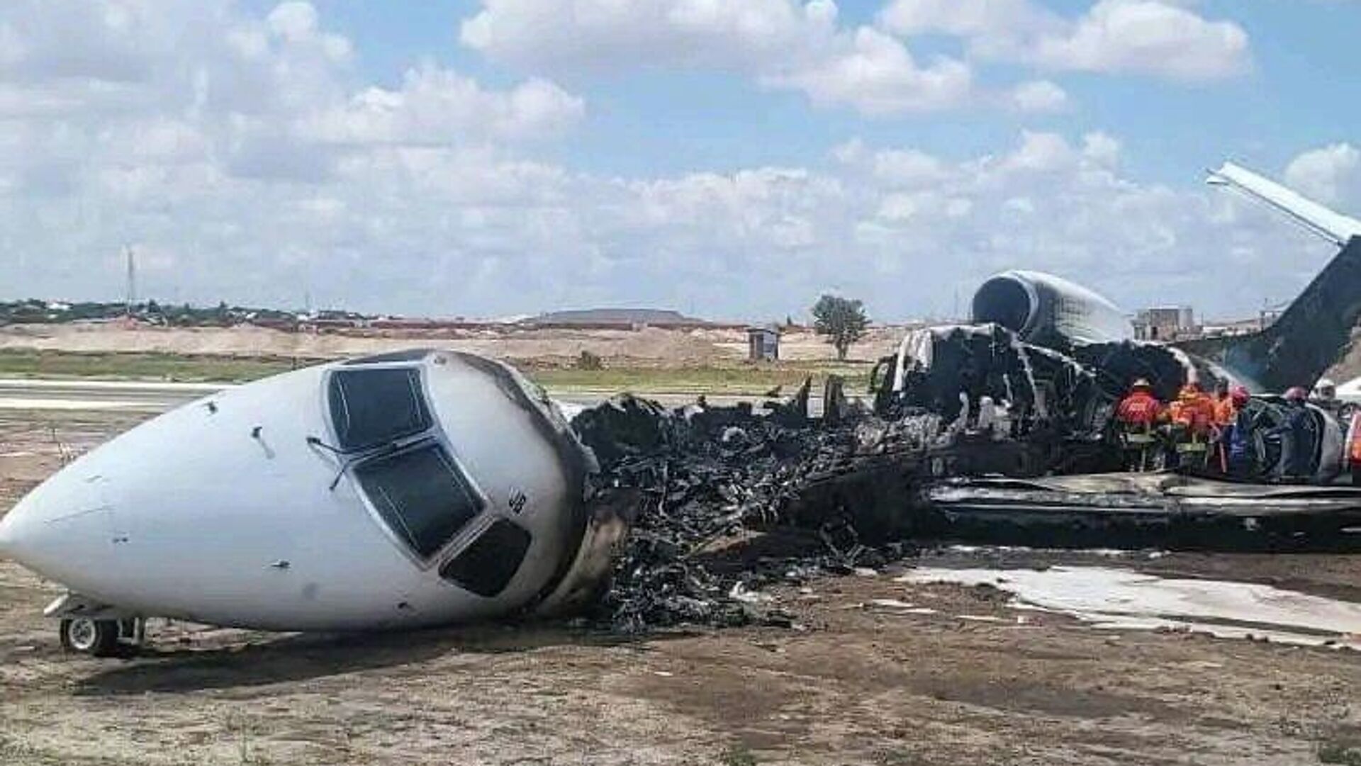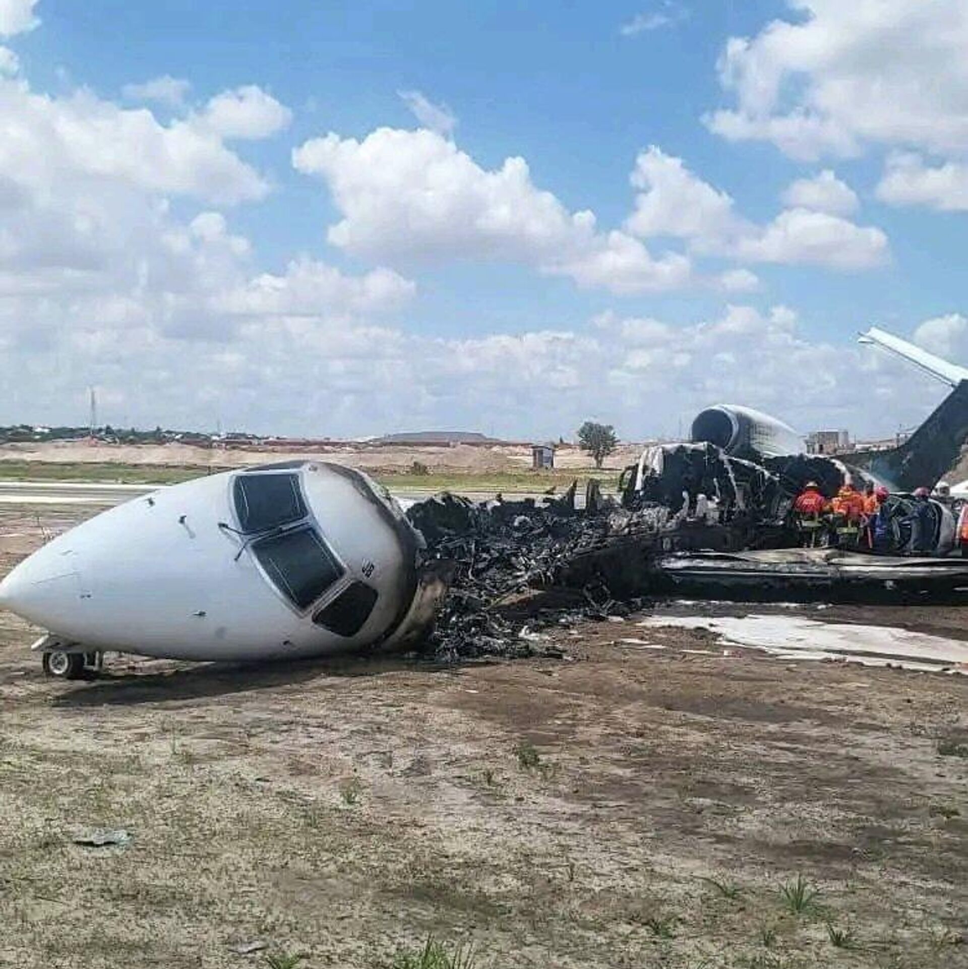 الطائرة قادمة من كينشاسا وتعرضت لخلل أثناء الهبوط تسبب في اشتعال النار فيها، بحسب وسائل إعلام محلية.