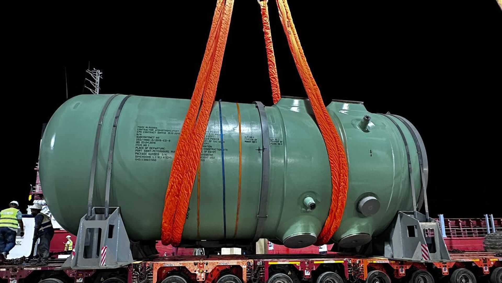 وصول وعاء ضغط المفاعل الخاص بالوحدة النووية الأولى من روسيا إلى ميناء الضبعة التخصصي بمصر - سبوتنيك عربي, 1920, 18.11.2025