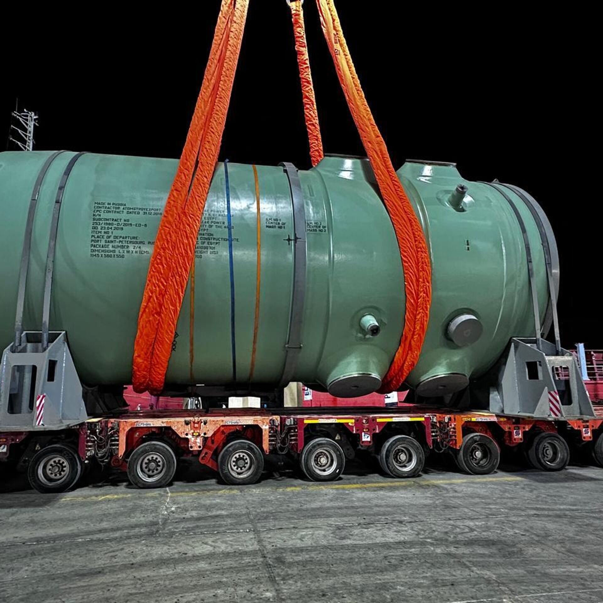 © Photo / NPPAوصول وعاء ضغط المفاعل الخاص بالوحدة النووية الأولى من روسيا إلى ميناء الضبعة التخصصي بمصر