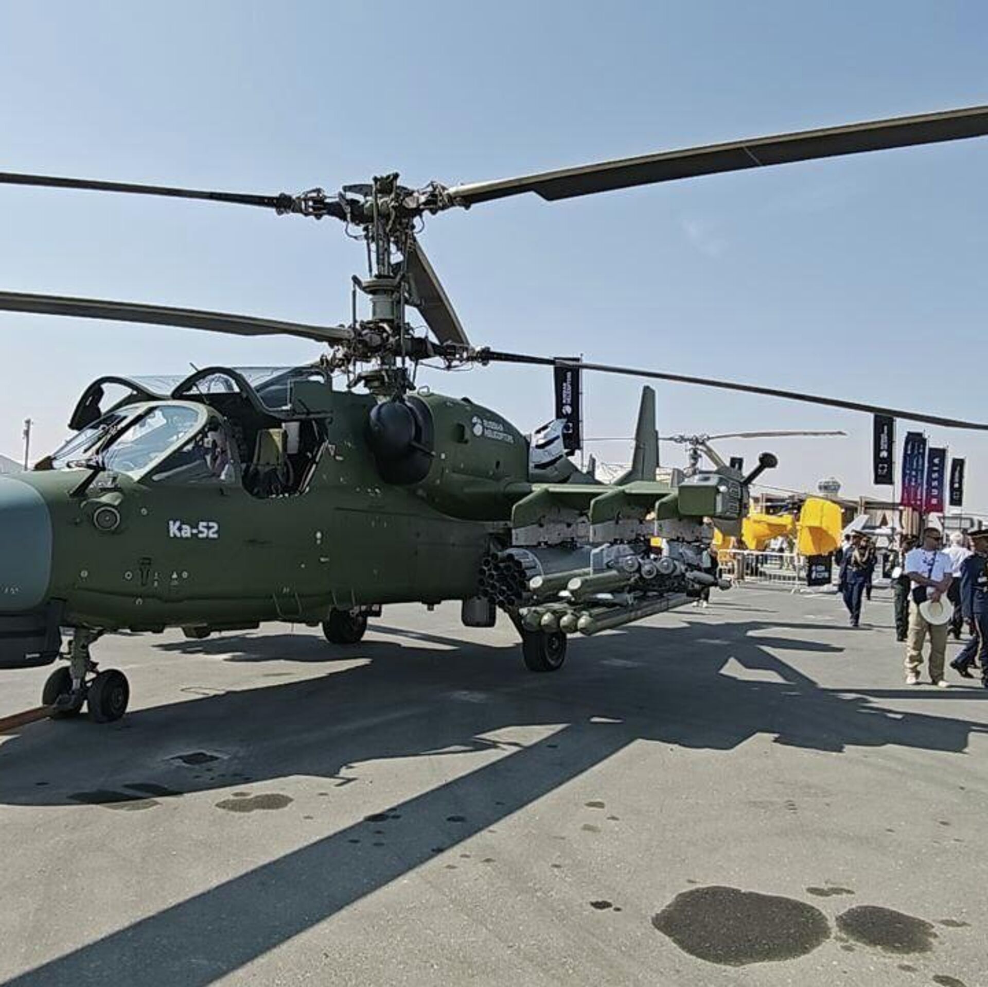 في مشهد يعكس قوة الصناعة العسكرية الروسية وتطورها، وصلت المروحية، "كاموف كا-52 أليغاتور" إلى معرض دبي للطيران، والتي تعد من أحدث المروحيات القتالية في العالم، وتتميز بتصميم ثنائي المقعد حيث يجلس الطياران جنبا إلى جنب، ما يمنحها مرونة أكبر في إدارة المهام القتالية.