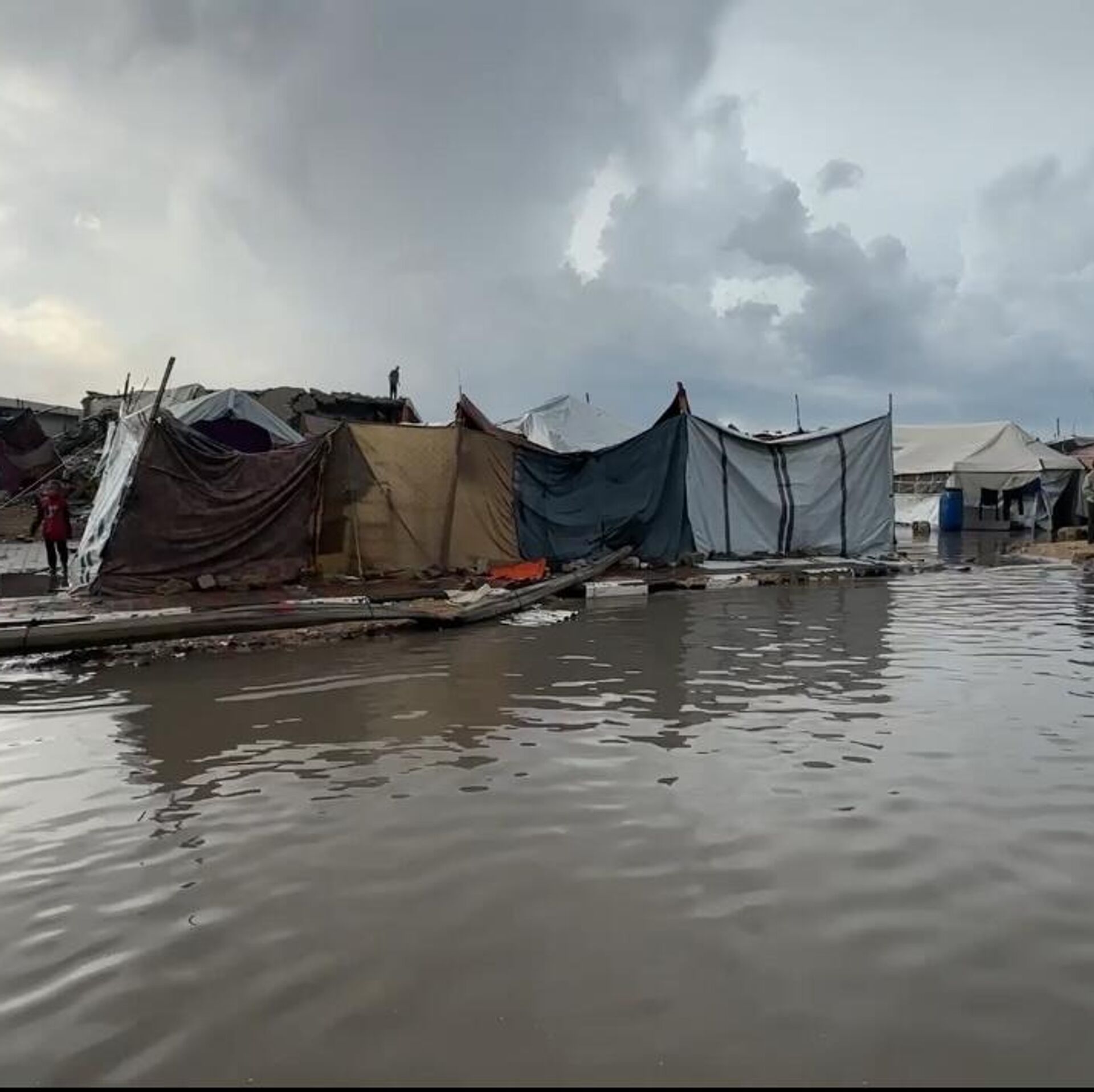 وتقول النازحة أم محمد عبد العال: "هذه خيمتي التي صمدت منذ عامين، وقد نزحت أكثر من مرة مع عائلتي خلال الحرب، واليوم هذه الخيمة تمزقت، ولم يعد لتسعة أفراد مأوى يعيشون فيه، ولا يوجد ملابس للأطفال تحميهم من برد الشتاء، ومنذ 8 أشهر لم يصلنا دعم أو مساعدة كبيرة، وكما ترى المنقطة هنا أصبحت مدمرة والمياه في كل مكان، وخيمتي يجب تغيرها الآن، ولا نعرف كيف نستطيع تأمين واحدة أخرى أو هل سيتم مساعدتنا بالحصول على خيمة جديدة".